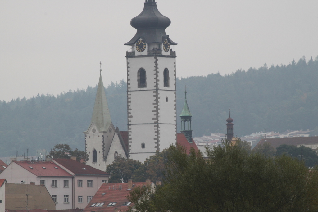 You have seen castles before, right? Not exactly like the one we saw on Friday. We have wanted to get out of the big city of Prague (1.1 million) before but this trip we had the time to do so. Friday morning we left on a small bus for a round trip of 250 miles to visit an old city and an old castle. We quickly left all signs of the city. In half an hour we were in real countryside. We shared the road with tractors that were going from farm to field. It is very green and heavily cultivated. We saw some corn fields that weren’t Nebraska- or even Illinois-sized, but were still large. Most of the fields were not too large. What wasn’t being farmed was covered with forest. The trees weren’t huge, but there were a lot of them. On the way back we took some real back roads and saw smaller fields and villages in the late afternoon light. A lot of the hay is rolled up and left in the fields rather than baled and the rolls were a pretty color and cast long shadows.
