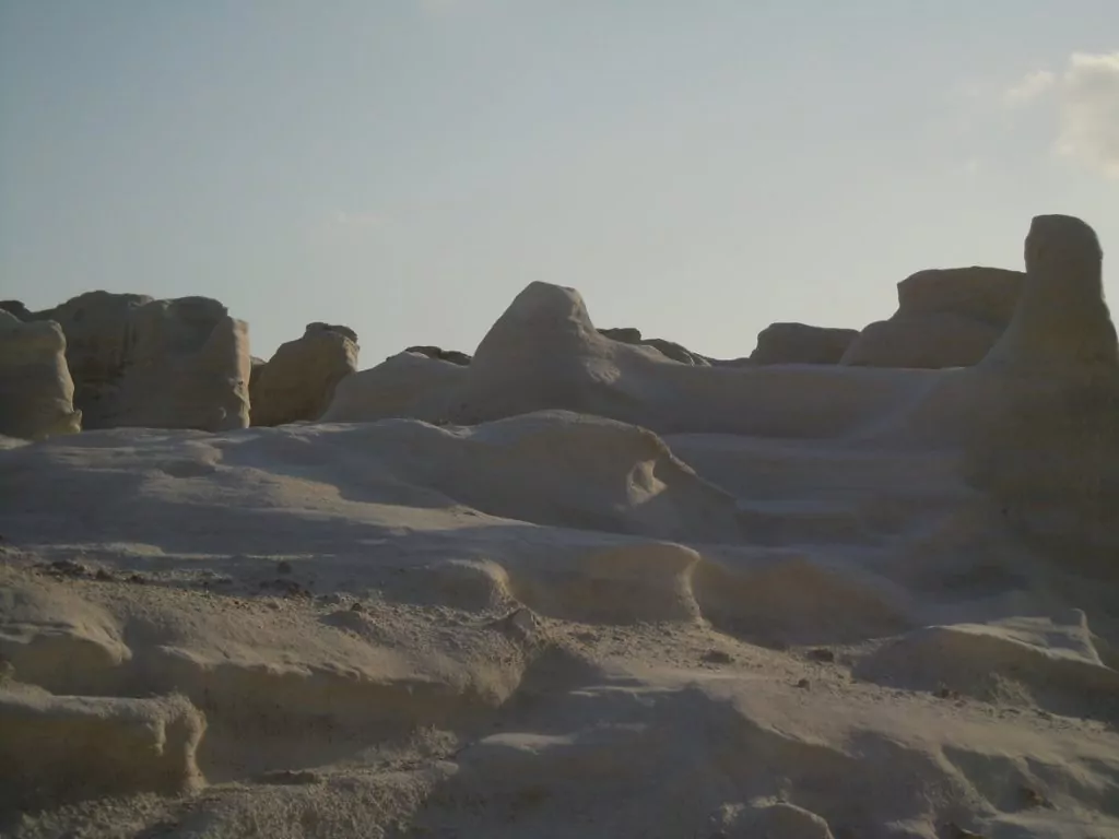 We started out by going to Sarakiniko which he described as a desolate beach. It wasn’t. This area of the island is made up of a combination of volcanic ash and seabottom from a series of eruptions starting about 2.5 million years ago. A lot of minerals were deposited and there has been mining here for a long time.