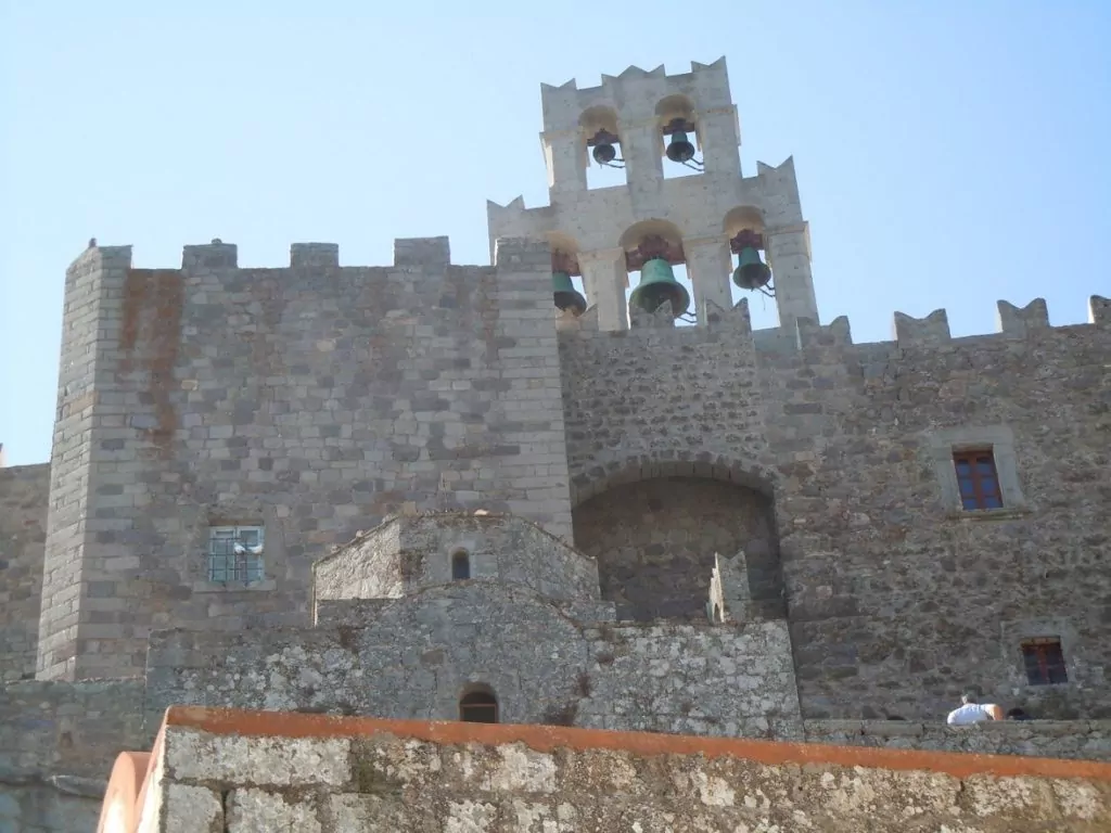 Our first stop was high above Skala. The setting was a small forest. We were there to visit the Cave of the Apocalypse or the Cave of Revelations. This is where the Apostle John received the visions that were turned into the Book of Revelations in the Bible. [Unless it was some other St. John or it took place somewhere else.] The place really is a cave but it now has a church built up around it. It wasn’t terribly interesting to us, but it was clearly important to some people. Unfortunately, we could not take pictures inside, or we might have been able to give some sort of sense of the icons and devotional items have built up over the centuries.