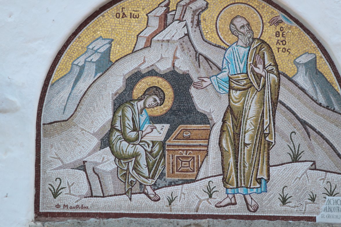 After Chora, we went to the fortified Monastery of St John. It was built as a fortress in the 11th century to protect the monks from (all together now) pirates. A soldier-priest named Kristodhoulos asked the Byzantine emperor for support and the emperor gave him Patmos and some of the surrounding islands. Only 15 monks live there permanently now. It is like a castle built up around what you might think of as a monastery. It was largely built in three years, which is pretty impressive when you see the size of the place and the thickness of the walls. The church and surrounding area were interesting but we weren’t allowed to take pictures. What used to be the treasury on the second floor is now a museum. There was plenty of gold and silver on display, so perhaps they did have to worry about pirates. More important than the precious metals, I think, were the early Bibles. Some were written on papyrus, some on parchment, and some on (early) paper. They also have a painting by a painter born locally in the mid-1500s named Doménikos Theotokópoulos whom we know today as El Greco. People from all over Europe, including Katherine the Great from Russia, have sent gifts over the centuries to show their devotion.