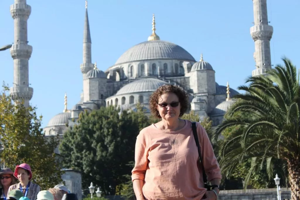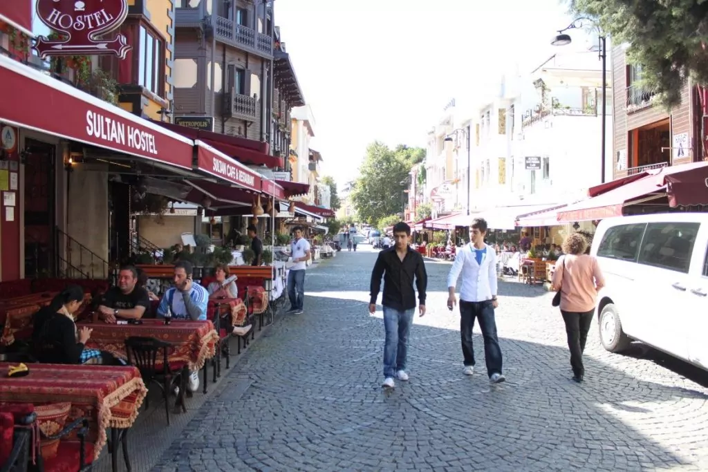 We looked at a half-dozen restaurants on our street before selecting one for a late lunch. We both had Turkish food while sitting on the sidewalk terrace watching people go by. Right now Patricia is standing on the balcony trying to photograph the two doves that seem to live in one of the trees.