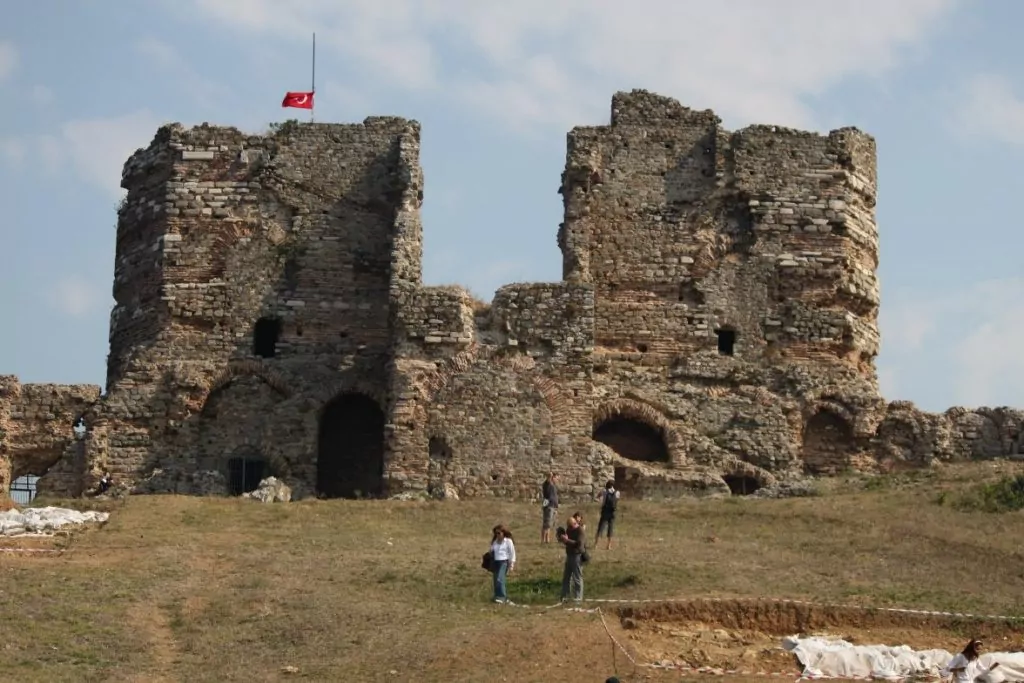 After lunch we hiked up to Yoros Castle which sits at a high point and overlooks the confluence of the Bosphorus and the Black Sea. I suppose I should have known better, but the Black Sea wasn’t. It was the same blue as the Bosphorus. My GPS said that the highest point on the walk was 450 feet but it did not note that it was 450 feet nearly straight up. Patricia had to take it in stages, but she made it. The castle is now in ruins and visitors can’t walk inside the walls but the view was easily worth the hike. [The Turkish government has just authorized more archeological research on the site.] There have been fortifications here since the time of the Phoenicians and Greeks with ownership changing hands many times until the late 1780s when it was largely abandoned.
