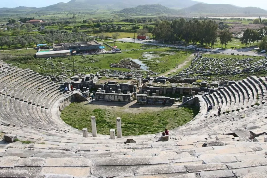 We next stopped at Miletus (noted above). Miletus was an important city for a very long time. Recorded history goes back to at least 1900 B.C. It was an important colonizer and had colonies as far away as the Black Sea. After being held by the Persians for some time, Alexander took the city (he visited other places we saw on this trip) in 334 B.C. We had only a short stop here. While there have been excavations here for some time (since at least 1873), we only had time to walk around the theater. Once again, we sent most of our time there learning about the immediate environs but also about the connection of this site to others—some of which we have visited.
