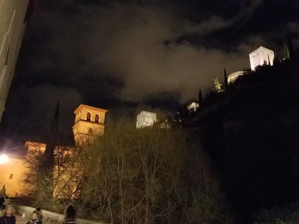 The old part of Granada that we visit is full of hills, old, narrow, curved streets which arbitrarily change names, and lots of one ways. That can make giving a taxi driver directions a challenge, as in our case, because we wanted the intersection of two streets. But we were able to get it to work and were soon at our Airbnb apartment high up in the Albaicín (or Albayzin) district. It is a very nice apartment with an outstanding view of the Alhambra and many tiled rooftops. The décor has a Moorish flavor with a nice tile floor. It is in a building that is at least 600 years old but it has many modern touches. AND, the wifi works, which is a plus. The owner, Leo, greeted us and gave us lots of local information. He left us with wine, beer, bread, fruit, and coffee so we are set for supplies. We walked down to Plaza Nueva, in and out of rain showers, and found a pretty good place to eat although it was early for kitchens to be open: it was just after 7:00pm. Leo was one of several people who have pointed out how unusual this rain is. He said that usually rains only a few times a year in Granada, but that this month it has rained frequently.