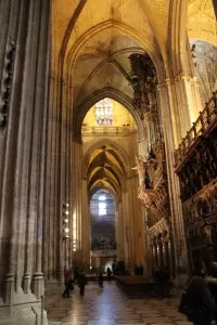 Wednesday afternoon I headed over to the cathedral, which we visit regularly. There is a discount entrance fee for people over 65 and in the past I have had to show my passport to get it. This time I said “Soy una pensionista” and the attendant looked at me and said “Sí” and no further verification was needed. Hmm. In addition to the restoration work going on outside, there is a good bit of work going on inside. The scale of the cathedral, like that of the Mezquita” in Cordóba, can’t be described, but has to be experienced. I try to take pictures that capture the immense space but I am never successful.