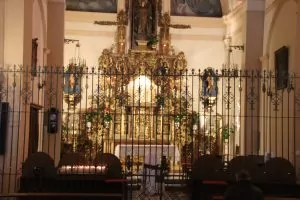 We decided to go to the Cathedral today, so we walked down Calle San Juan de los Reyes. The church of San Gregorio Bético is on the way and, for once, it was open. The church is built on the site of a Moorish prison used to hold Christians until the reconquest in 1492. It could not be a greater contrast to the Royal Chapel and the Cathedral. It is simple in design inside and out and offers a few stained glass windows and a very nice altarpiece.