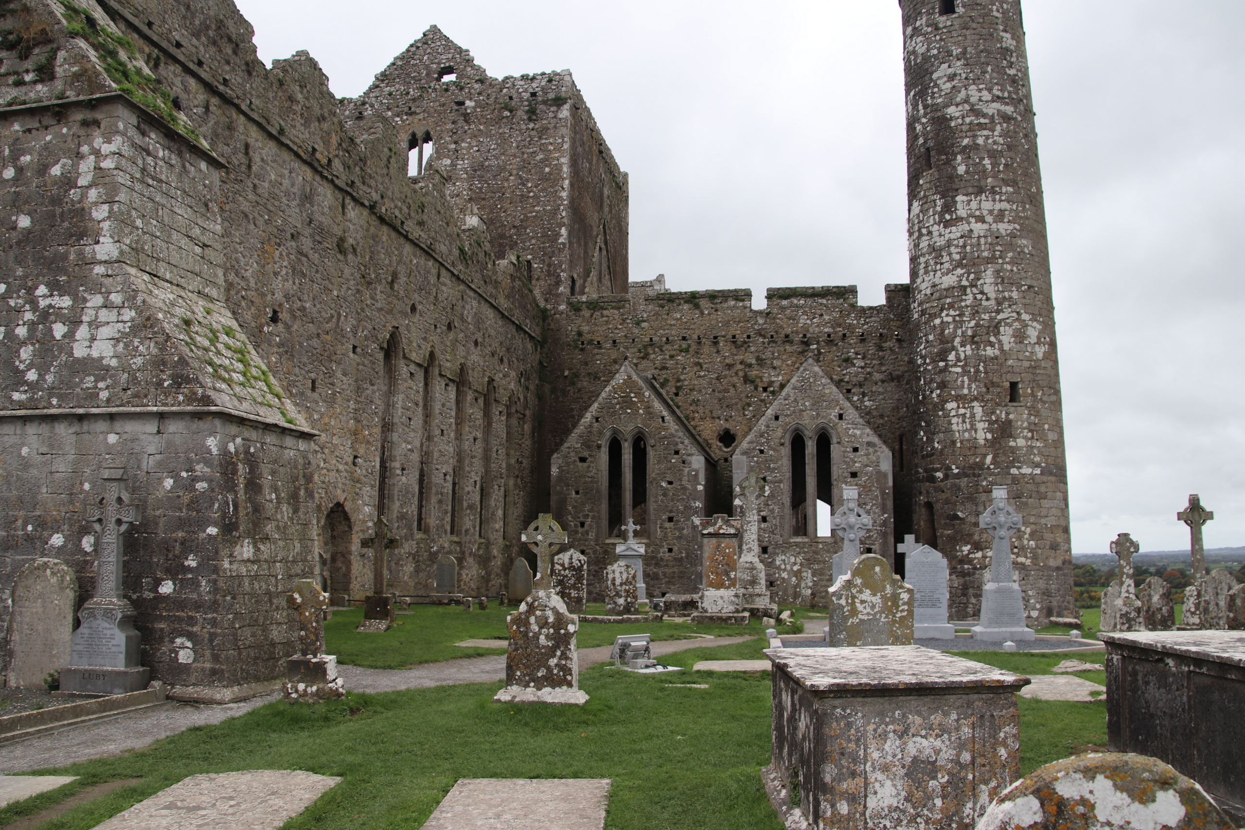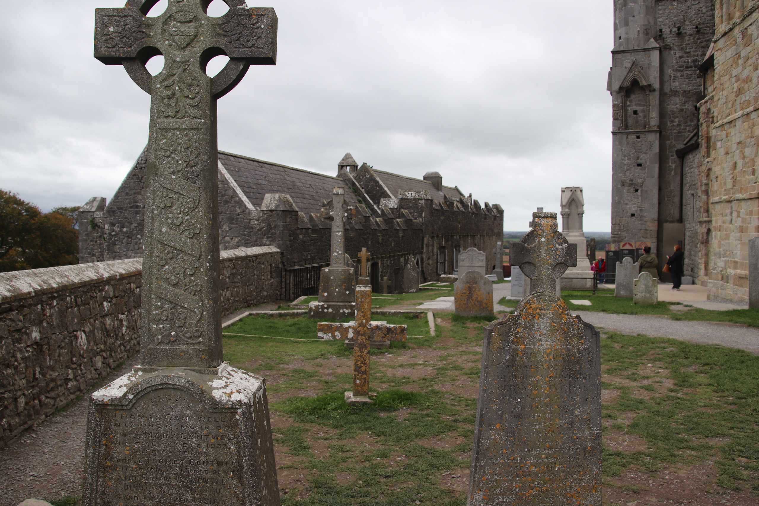 The Rock of Cashel was the traditional seat of the Kings of Munster. The top of the hill provides sweeping views, which probably helped its defense. There were, not surprisingly, several periods of building on the Rock, but some of the ruins date back to at least 400 CE (current era). St. Patrick is supposed to have visited in 432 CE. Now the ruins are of ecclesiastical buildings dating from the 12th to the 15th centuries.
