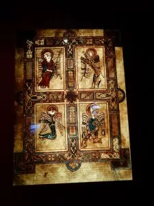 What is the Book of Kells? Here is a write-up from the brochure: “The Book of Kells, one of the great treasures of medieval Europe, is an illuminated manuscript written in Latin, and containing the four gospels of the New Testament (Matthew, Mark, Luke, and John) together with various introductory texts and tables. It was created by Early Christian monks around 800AD. It is a masterwork of Western calligraphy, employing decoration that is not only extraordinarily rich and colourful, but also, in places, deeply enigmatic. It is widely regarded as Ireland’s finest national treasure.”