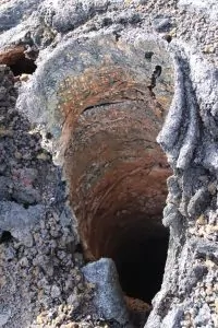 Noah mentioned “tree holes.” These were trees that had been engulfed by lava and then left an impression of the tree behind. [After we wrote this, we learned that these are called “tree molds.”] If you stick your hand into one of these holes, the inside of which has an impression of the outside of the tree, you can feel the heat which is still present just under the surface of the lava. The landscape here was full of steam vents and looked more like a science fiction movie set on a volcanic planet than just a half-mile from a tropical rain forest. Kai was a great guide and explained what we were seeing and how it affected him and his neighbors.