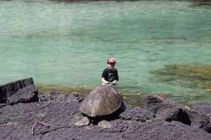 Our last stop was one that I think Noah enjoyed a great deal. We stopped at Carl Smith Beach. The park is more like a lagoon than what you may think of as a beach. There isn’t much sand. The water is clear and shallow–and a little colder than the water at Hapuna Beach. There are sea turtles in the area as well. Noah went into the water and explored the area. We were proud of him because he went out by himself even though he was not used to the area and he did not know what to expect.