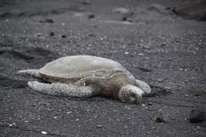 Green sea turtles are often found on the beach and Friday was no exception. We saw quite a few of these large, slow-moving turtles. They are a protected species but we could still get close enough to take pictures. Noah and Patricia explored the shoreline and we climbed some of the large black lava rocks to get a view of the beautiful beach.