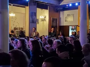 We met Dennis at Teatro Villamarta and walked to Sala Paúl to see Carmen Hererra in a show she called “La Luz Que Me Alumbra” (“The light that illuminates me”) and she was indeed “illuminated” from within. It was a good performance with a variety of styles and a variety of music, including a small brass band. Patricia observed that Carmen Hererra was confident in her skills and herself.
