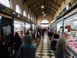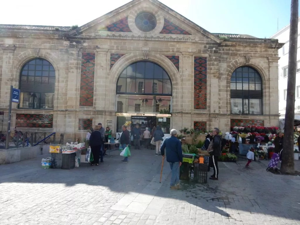 Patricia and I went out and headed in the direction of the central market (mercado). That is the local fish, fruit, cheese, and produce market. It is similar to a farmers’ market. It is located in a nearby square. It isn’t open every day, and it closes around siesta time, so we wanted to get there [relatively] early. The weather was already nice enough for us to sit outside and enjoy a café con leche before walking through the market building. There are many stalls inside the historic building and the stalls all have very nice displays of fish, meat, cheese, and so on. Not all the fruit or produce is grown locally, but a lot is. The fishmongers and butchers were busy preparing their wares for the crowds of customers.