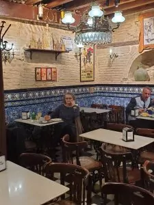 On our last day in Seville we finally found what will be our go-to breakfast place. It is nearby, no more than a 5-minute walk. Called Bar el Comercio, it was packed about 75% / 25% with locals and tourists. TripAdvisor reviews said it was busy and they were not kidding. We didn’t get there for breakfast until 10:30 and it was still very busy. We have learned to grab an empty table, even if it hasn’t been cleaned. If we don’t, someone else will.