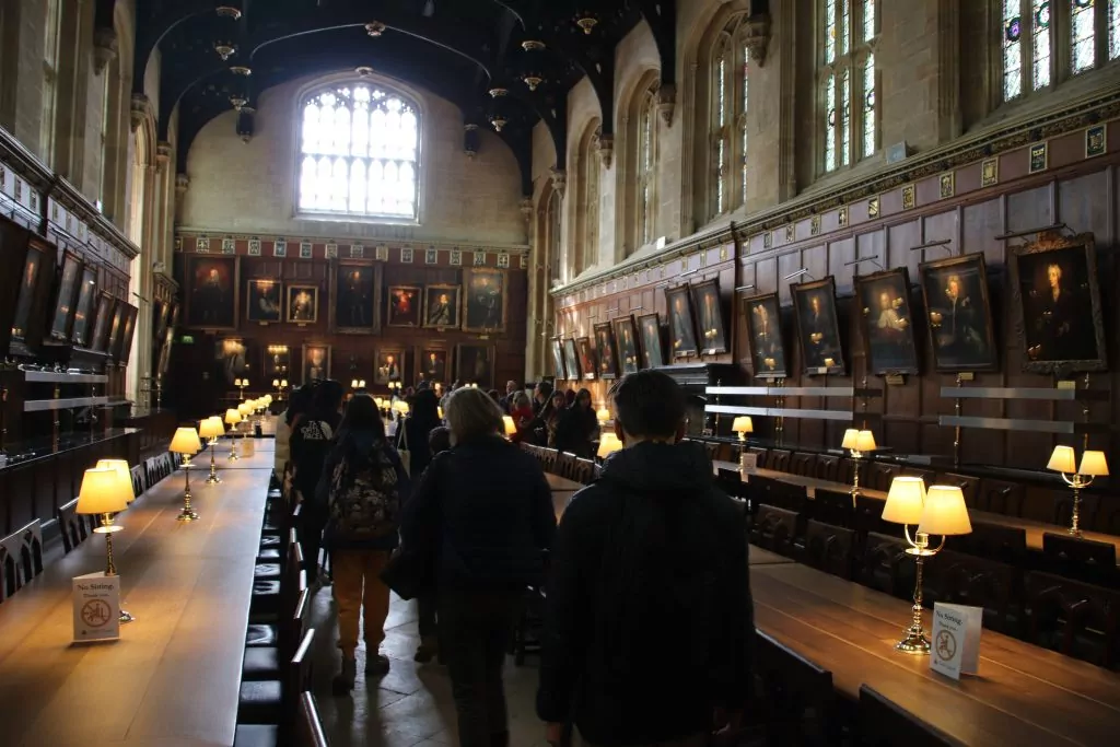 Christ Church, built by Cardinal Woolsey, and appropriated by Henry VIII, was also a filming location for Harry Potter. We learned that a lot of exterior shots were done for the early films, but then sets were used for the later films. Christ Church was built to be magnificent and to show off power. We walked through the Great Hall, which is used to serve meals. At first look, one would think that was where the Harry Potter dining scenes were filmed but we were told that while the Christ Church Great Hall was the model for the one in the films, no filming was done there. That’s because students are served three meals a day in that room and filming would have been very disruptive.