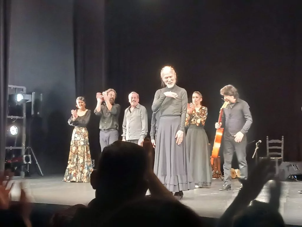 Our first performance was at Atalaya where we saw Venero (Venerate) by Águeda Saavedra. I was a little unsure about this show at its beginning because of the way it began. She appeared to by clawing her way out of a tomb and crawling on the stage. But after that, it was more than an hour if just great dance and cante. As an aside I should say that the cante this year seems better than ever at every performance. The performance won loud and long applause. An interesting feature of the performance was that all of her costume changes were done on-stage.