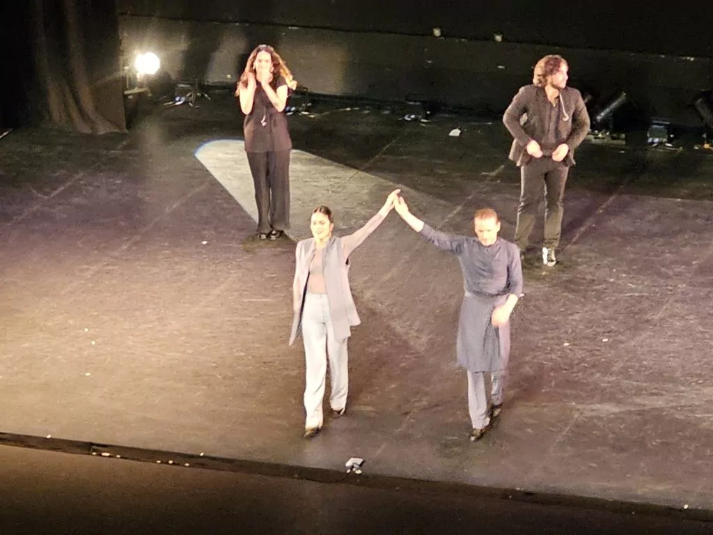In the evening we attended Alter Ego by Alfonso Losa and Patricia Guerrero at Teatro Villamarta. Here is part of the synopsis: “Alfonso and Patricia, they are not just two. In this meeting of emotional mirrors, their other, more sincere, distant, committed, uninhibited and exposed selves also appear. Letting themselves be carried away by the latent, by the self that accompanies them, protects them and also contradicts them. Alter Ego is a game of spectrums, of two bodies that show each other and show us their asterisks, dancing on the edge of their own.” [full synopsis here.] Oh-oh, I thought; another deep probing of self on display for the audience. Nope! What we saw was 75 minutes of well-thought-out and wonderfully executed music, cante, and dance by artists who gave us everything they had in the way of [flamenco based] creativity.