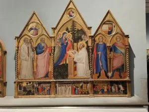 The object labels for the works were very good and I tried to remember to take a picture of the work and its attribution / explanation. Much of the art we saw was commissioned by the city of Florence. Much of it is religiously oriented but can be appreciated just as art. There has been a lot of restoration work done and the explanations were very clear about what has been recovered. Also, after the disastrous flood of 1966, many pieces had to be rescued and restored and are now on display here.