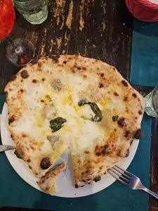 It is still chilly here but it was mostly sunny today. It was too cool to sit outside for dinner so the decision making revolved around finding a place that had pizza we would both like. Fortunately, a few steps from the hotel there is a row of 5 ristorantes, all of which had good menus.