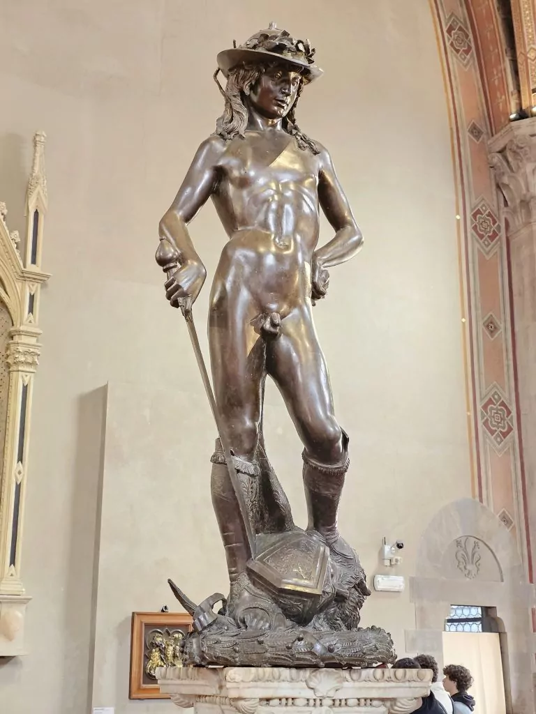 Today, Monday, we had tickets for the Bargello museum. The Bargello is the oldest public building in Florence. Its construction began in 1255. It has been a barracks, a prison, and a museum since 1865. Trials and executions were held there.