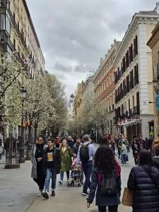 On Friday we had an even less structured day. We chose to visit places we knew but to get there by new routes. We are pretty comfortable walking around this area, so we did not bother with asking Google for directions. We went to a large department store—El Corte Inglés—which is housed in a tall building. The top floor has observation windows which give a good view of the area. I can report that the gelato stall on the 9th floor is back in business after being closed for a while. Its closure was a disappointment, so we were glad to see it back in business—even if we did not have any gelato.
