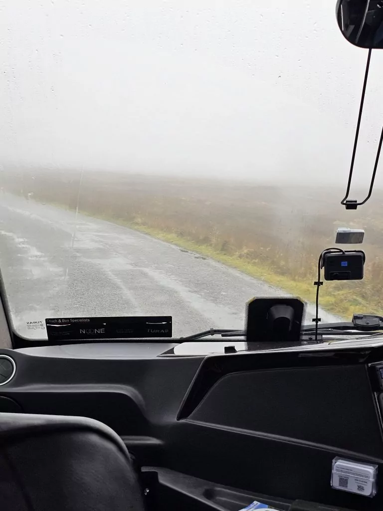 When we got to the hotel lobby at 7:30, it was still dark and it was raining cats and dogs or whatever animals it rains in Ireland. A driver there to pick up some other people said “It’s like Armageddon out there!”. It was only a typical Irish exaggeration, but it was stormy. We had planned to wal the mile to our pickup point, but gave that up quickly and ordered an Uber. It turns out that Ubers in Dublin are just taxis with an additional Uber sticker.