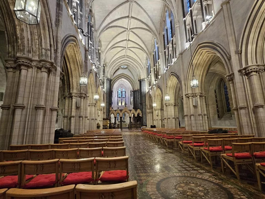 The invasive, swirly, cold wind managed to remain in our faces as we walked from the storehouse to St. Patrick’s Cathedral, which took about 25 minutes. Once again, we were a few minutes early for our 2 o’clock time slot, and once again we were waved in early. We had visited St. Patrick’s in 2018 and were looking forward to seeing it again.
