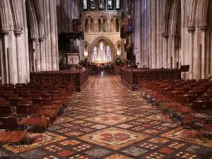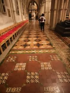 Visiting Christ Church Cathedral now, 150 years after the restoration, everything we saw seemed as if it had always belonged. There are beautiful stained glass windows, but those date from the restoration. The floor is tiled with Victorian reproductions of the original medieval tiles, some of which have been preserved. The space is open and well-lighted. There were few other visitors so we were able to wander around and look at everything. I hope the pictures on the pictures page do justice to what we saw. [I’ll post more pictures when we get home.]