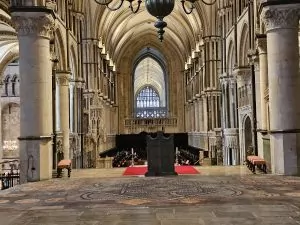 What we did not know when we arrived at the Cathedral was that something called “school days” was happening. More than 300 6th formers (last year of primary school) were there to learn about stained glass, masonry work, medieval music and other arts and crafts. Apparently, most people who know about school days stay away at that time because—how can I say this politely—300 kids can make a LOT of noise. We were also advised to be careful not to include children or the activities in our photos and videos.