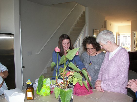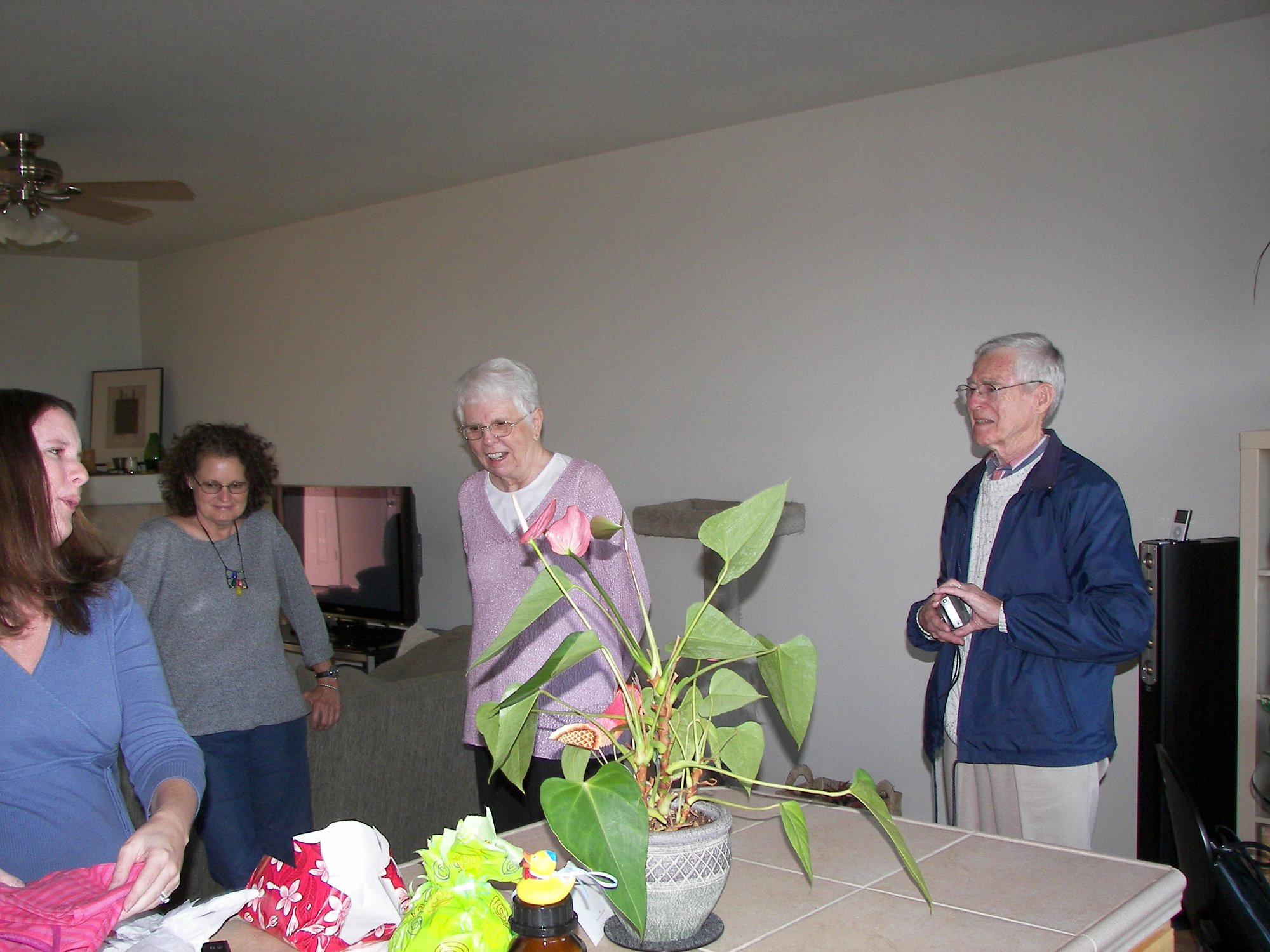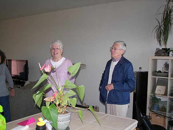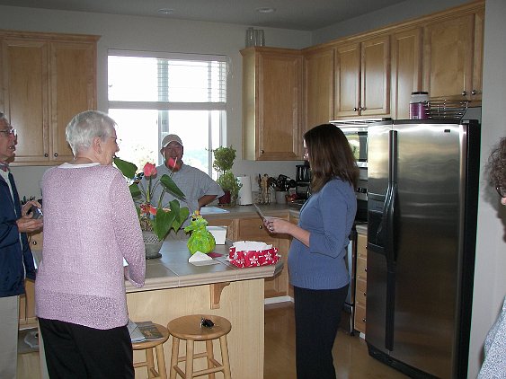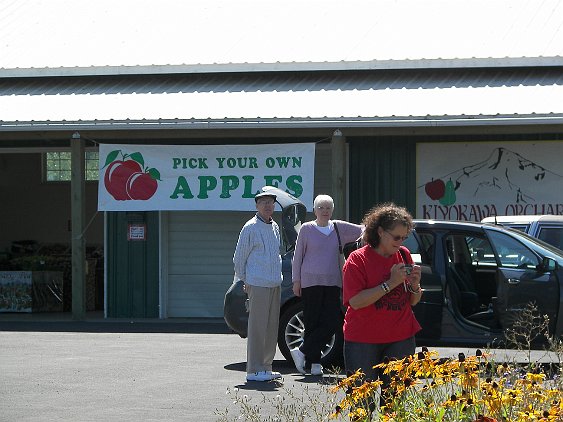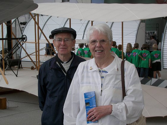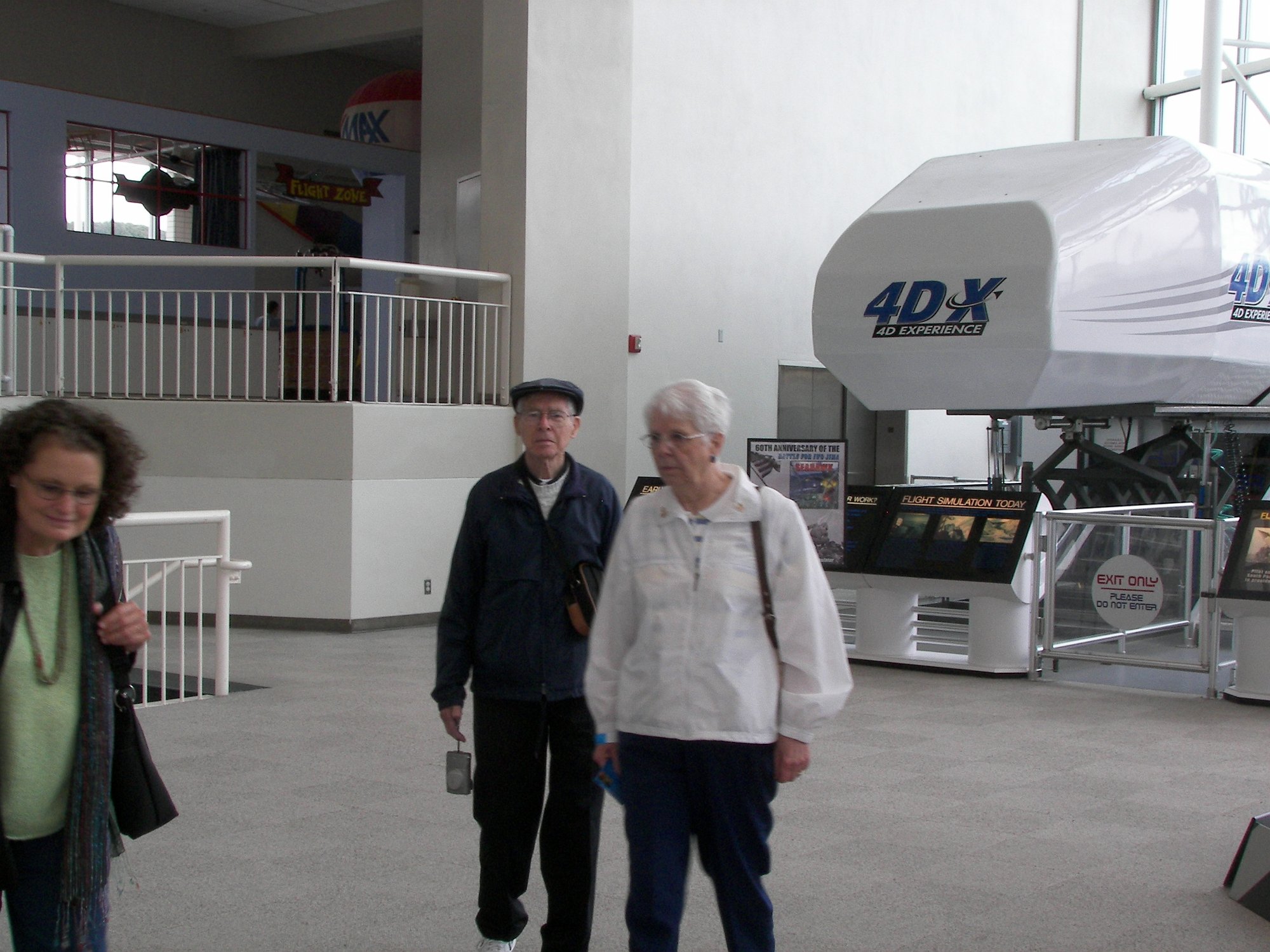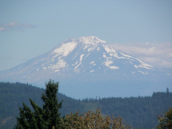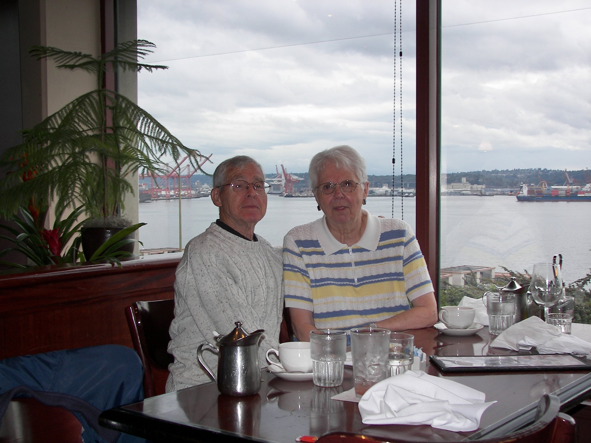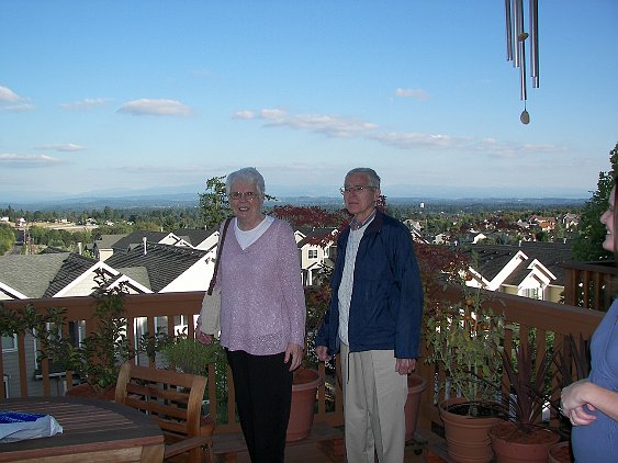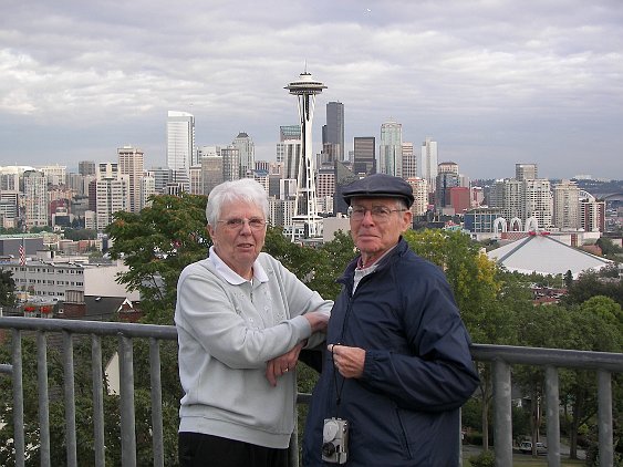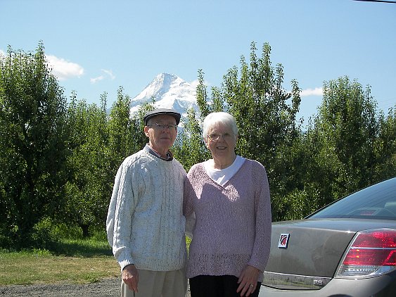 At the Boeing Air and Space Museum An Apollo capsule Model of a Mars rover. It is bigger than I thought. At Cutter's restaurant in downtown Seattle. At the Kerry Park overlook. We drove down to West Linn to see Tevya and Kris. This is taken from Tevya's back porch. Presents for the baby-to-be. We went for a drive on the Oregon "Fruit Loop." This is Mount Hood. In front of an orchard on the Fruit Loop. With Mount Hood in the background. We think this is Mount St. Helens, but the top doesn't look chopped off enough. Boarding the ship and leaving Seattle