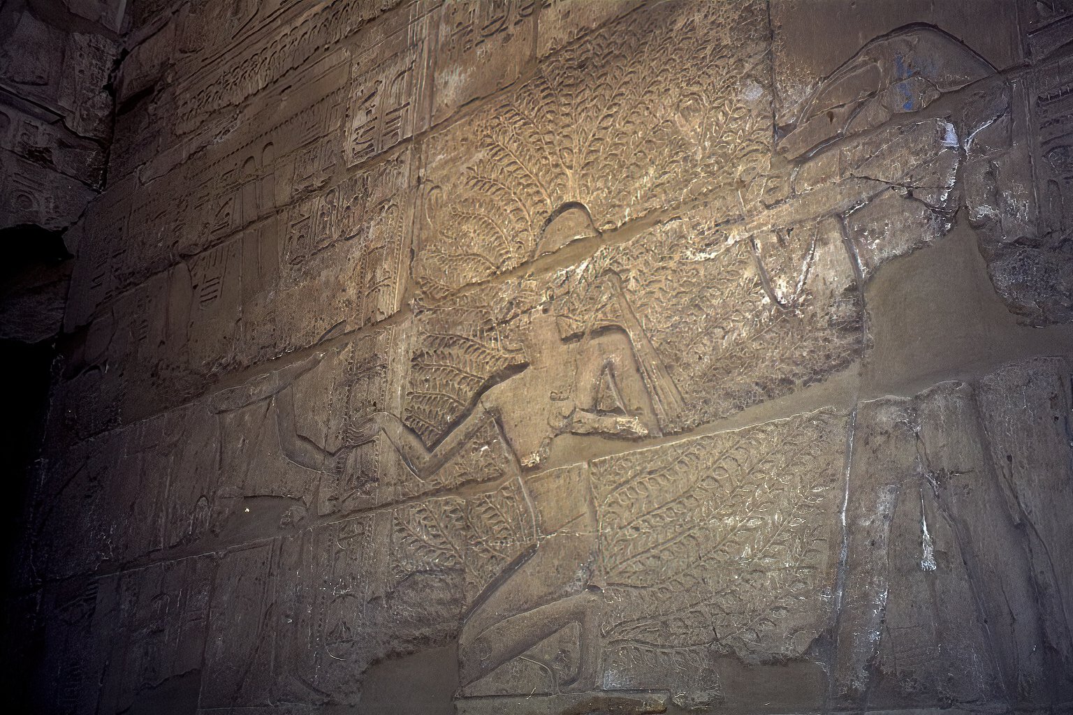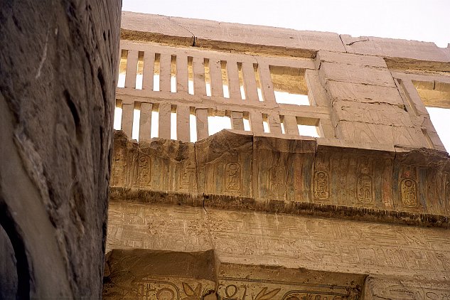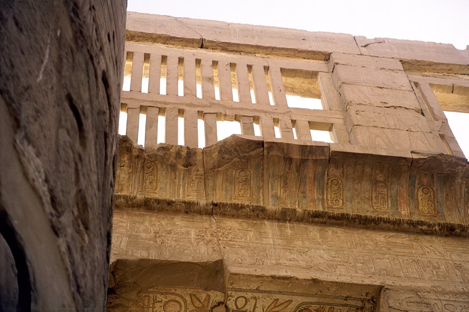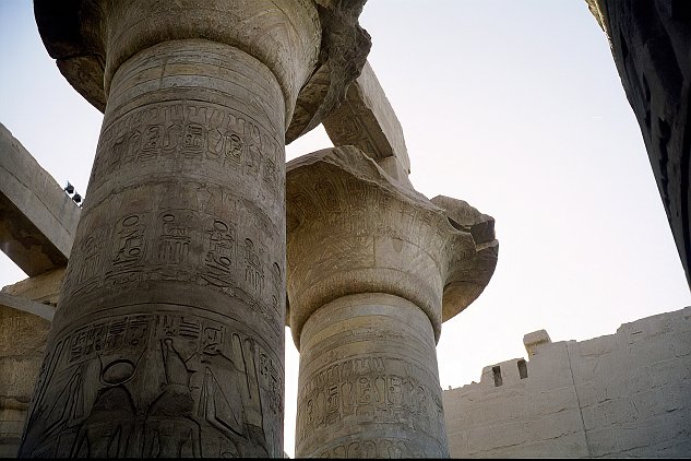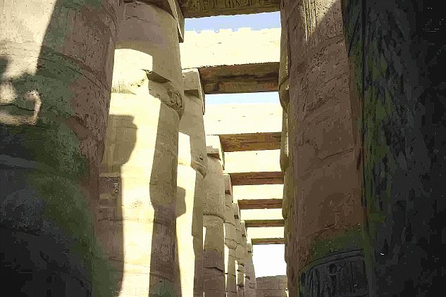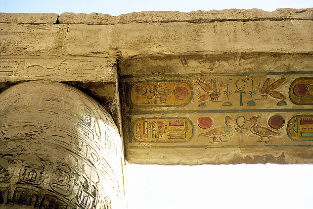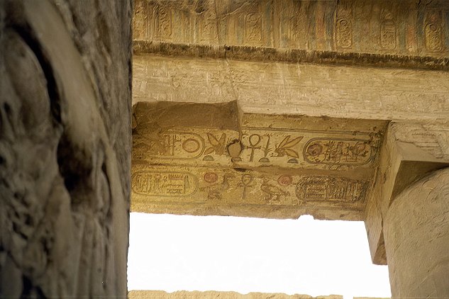 Karnak: How did they get this ceiling block up and in position? Look at the bee in the fresco.
