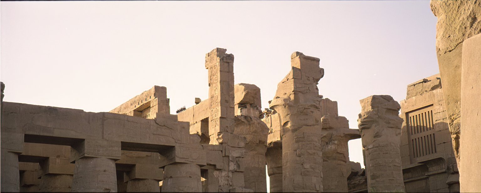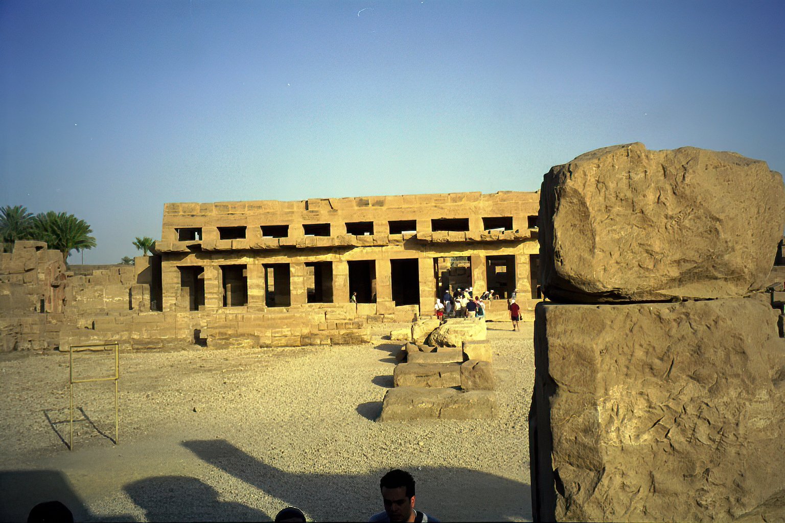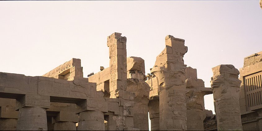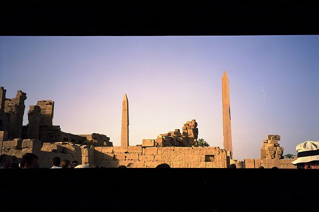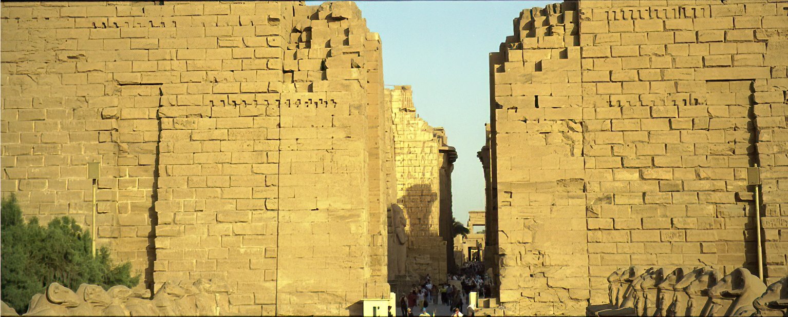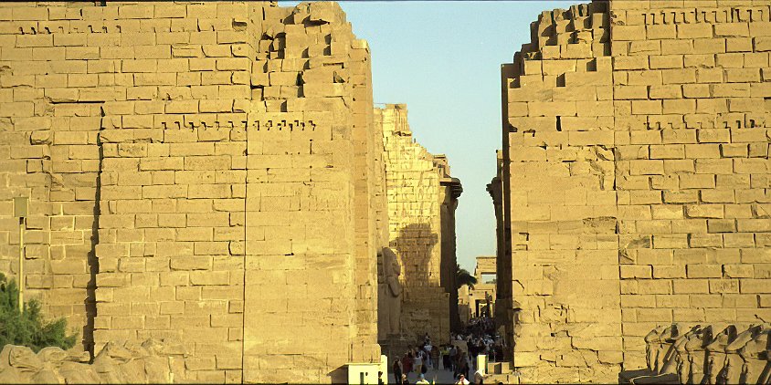 Karnak: Looking back at the main entrance. Note that this entrance was not finished: you can see that the pylons were not connected at the top as they were in…