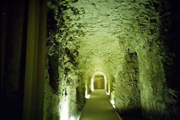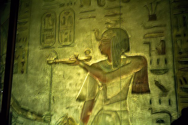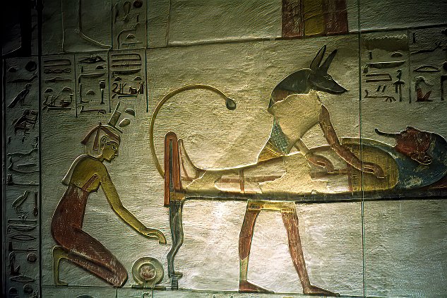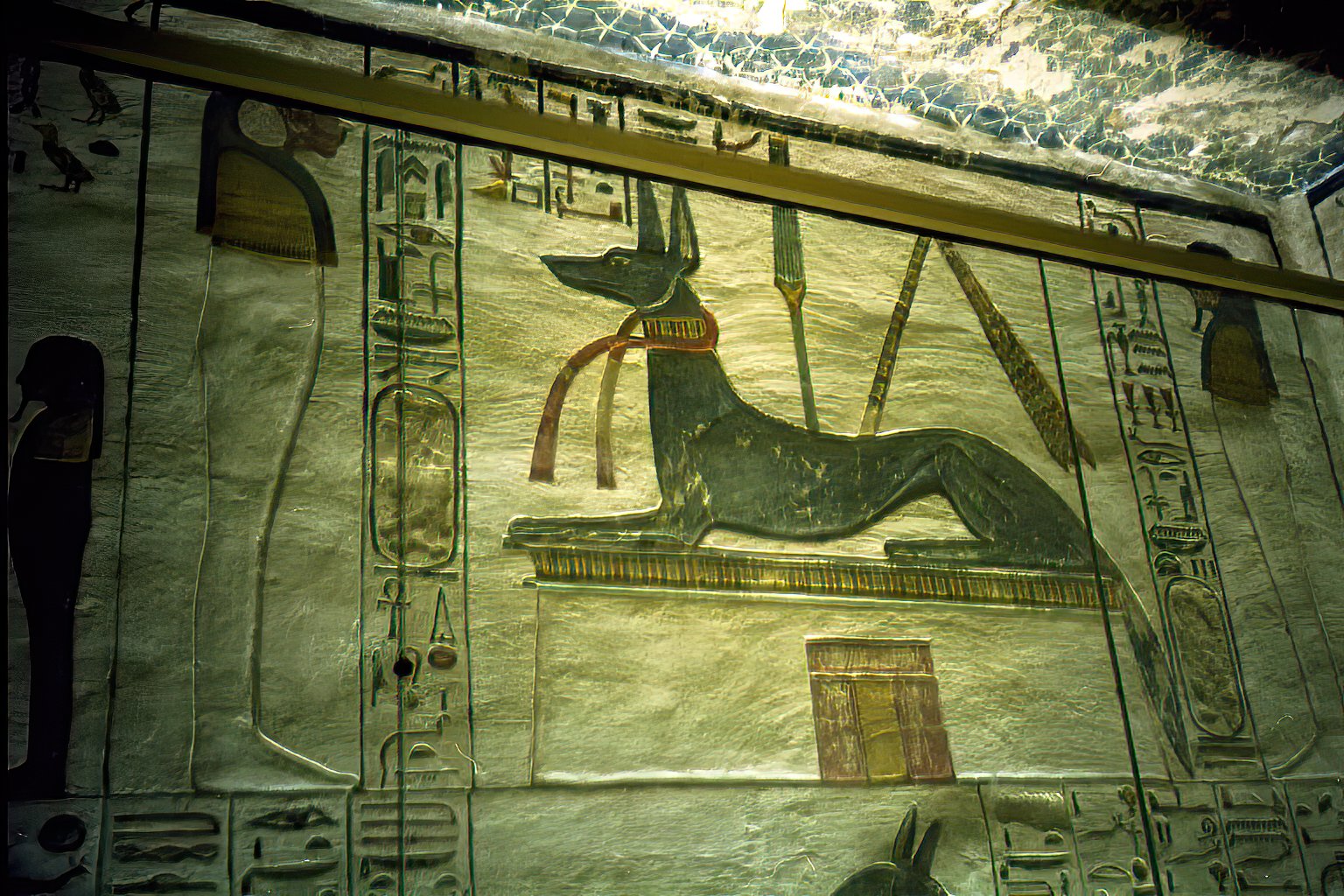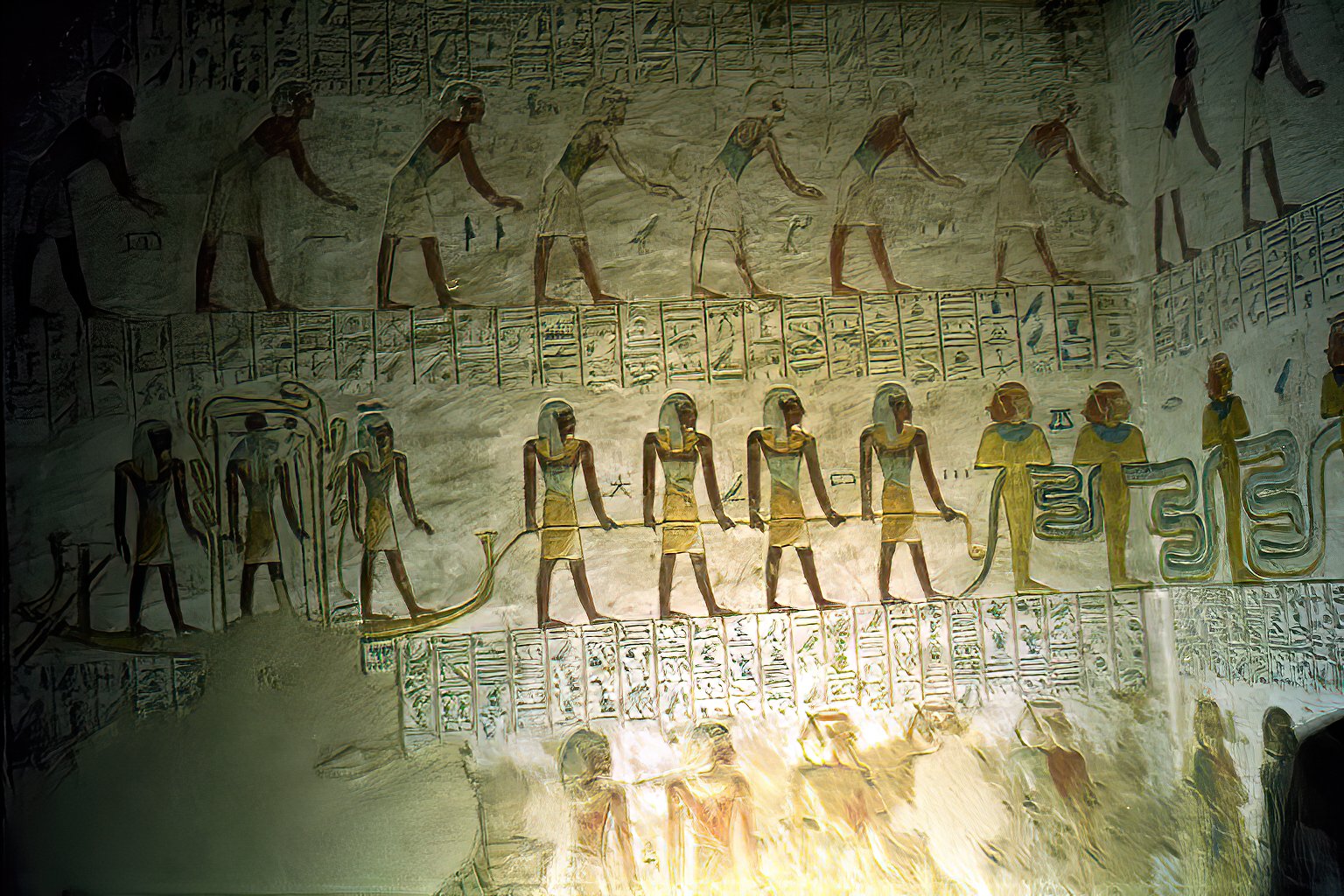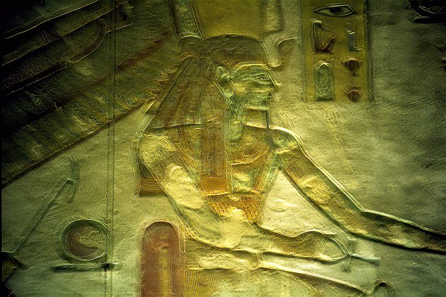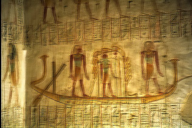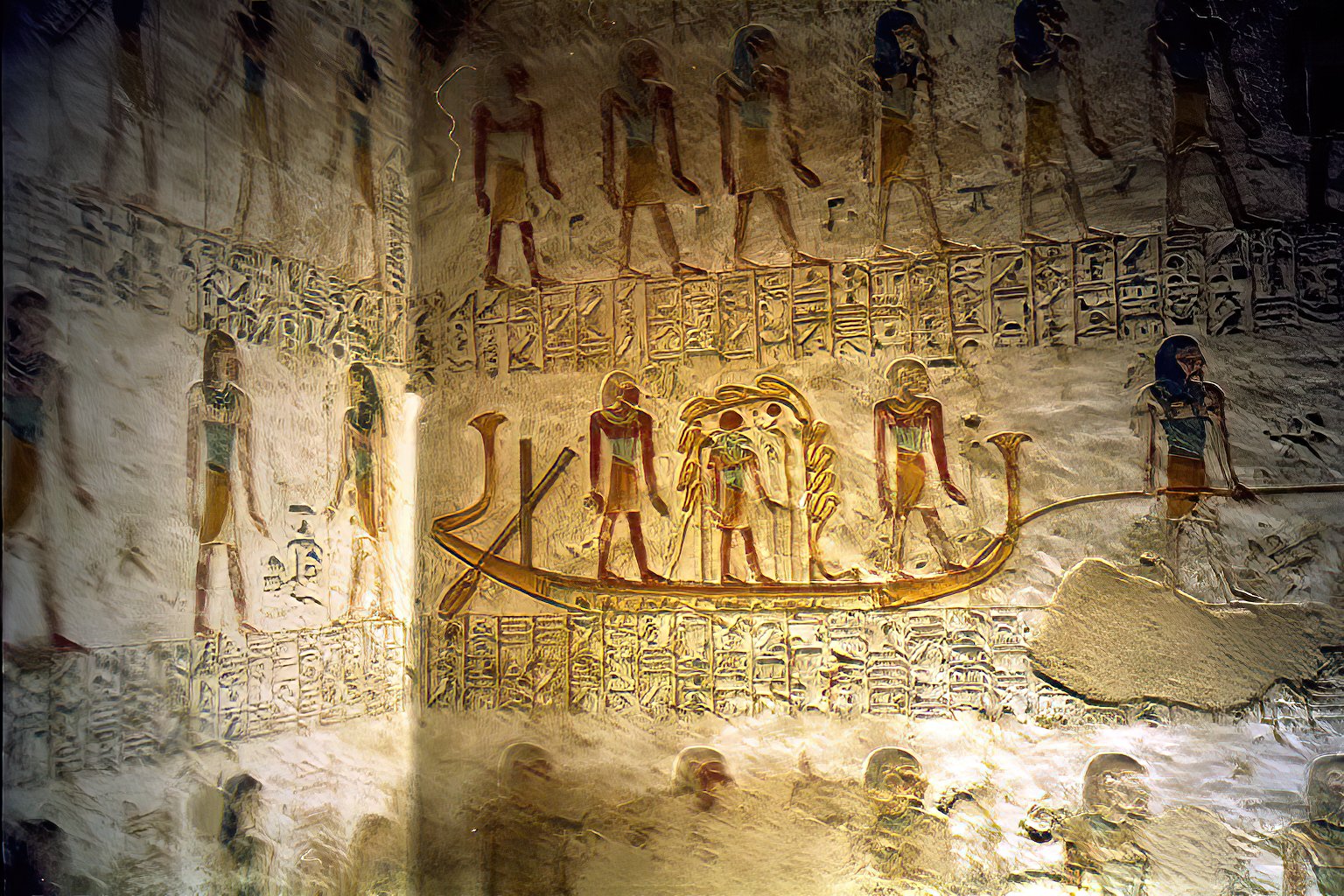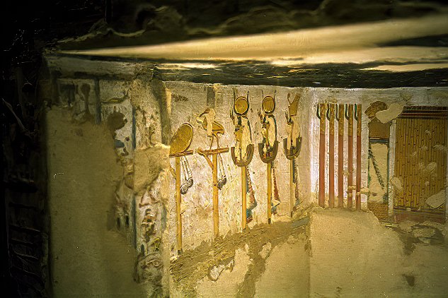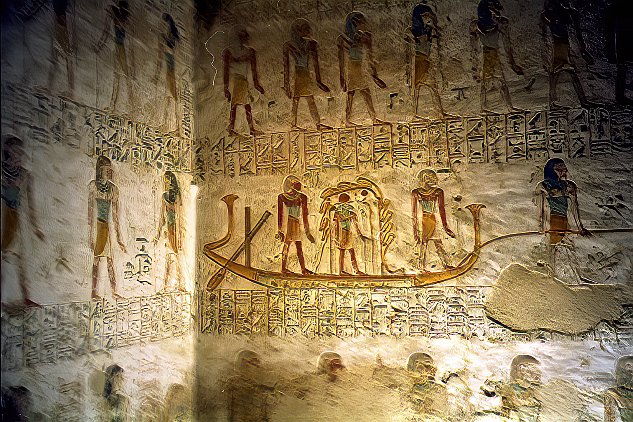 On the ceiling of the corridor in the tomb of Seti II. The blue portion depicts the heavens.
