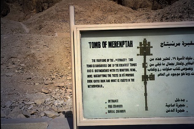 Sign outside the tomb of Merenptah: The fourth king of the (19th) dynasty. "This tomb is considered on of the greatest tombs and is distinguished with its…