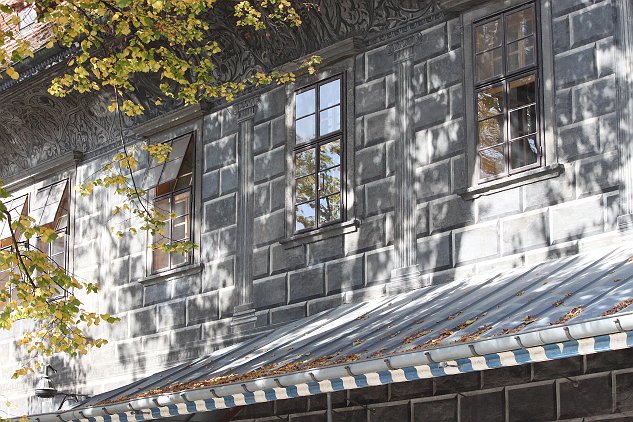 Did you look? The stones are actually painted. Sometime in the Baroque era the owners thought this was clever.