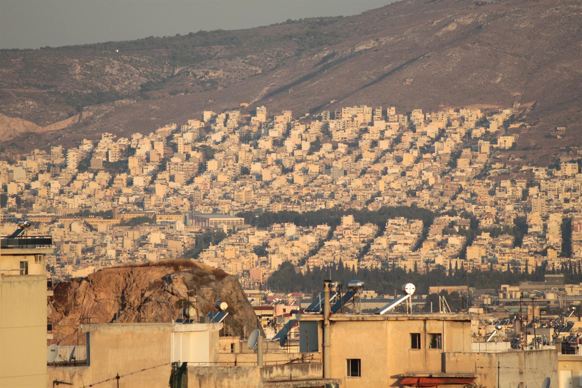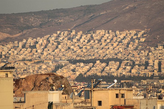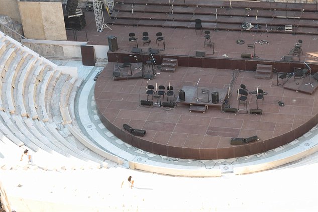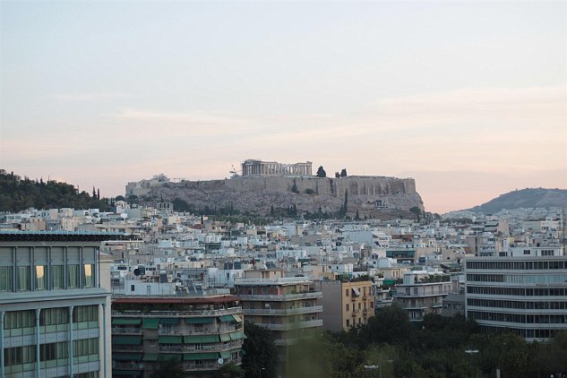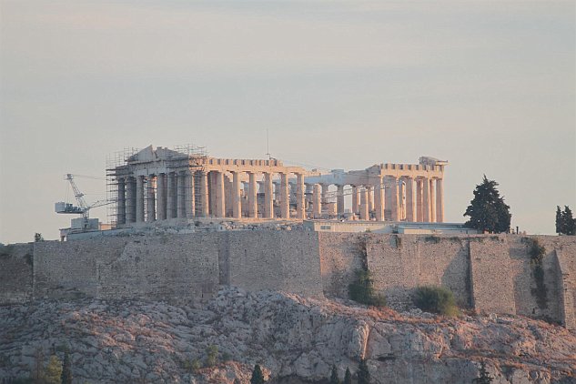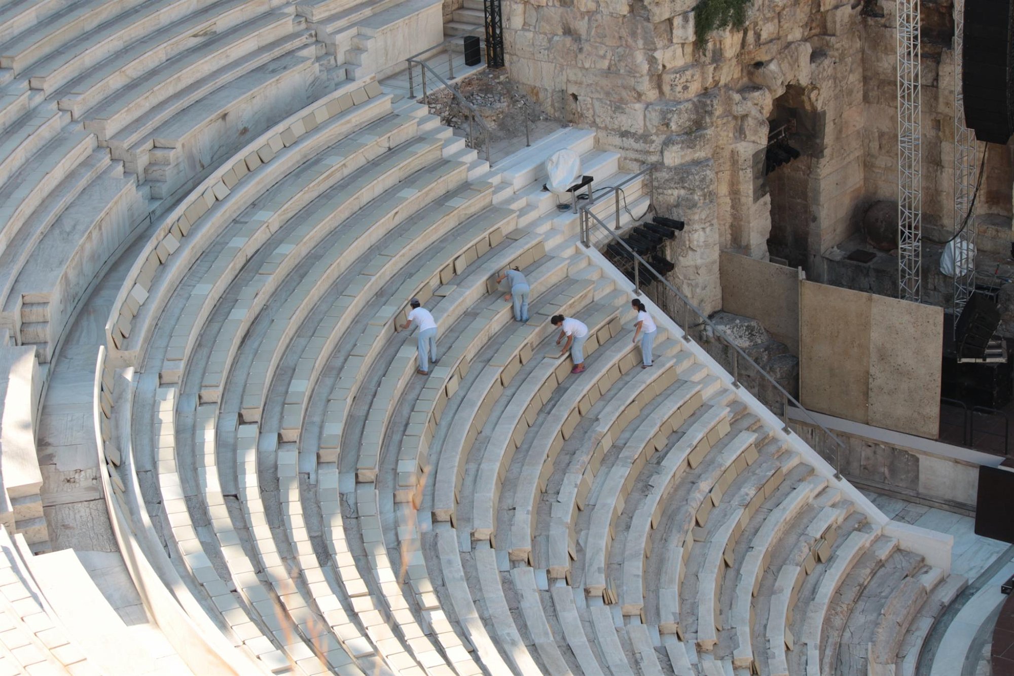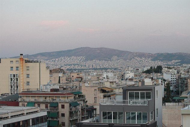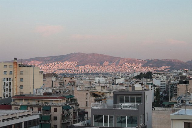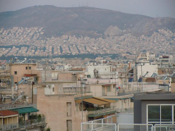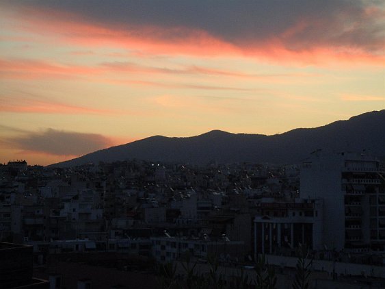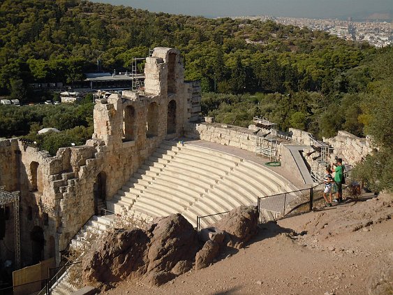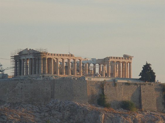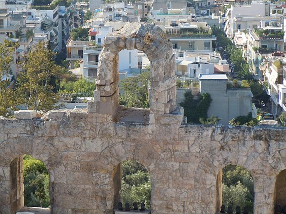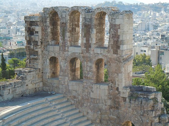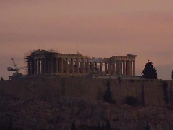 The Parthenon and Acropolis from our hotel Dawn in Athens Early morning light Like many Mediterranean areas, lots of the buildings are white Theater of Dionysos on the Acropolis The theater of Dionysos is still in use. The old overlooking the new Delphi
