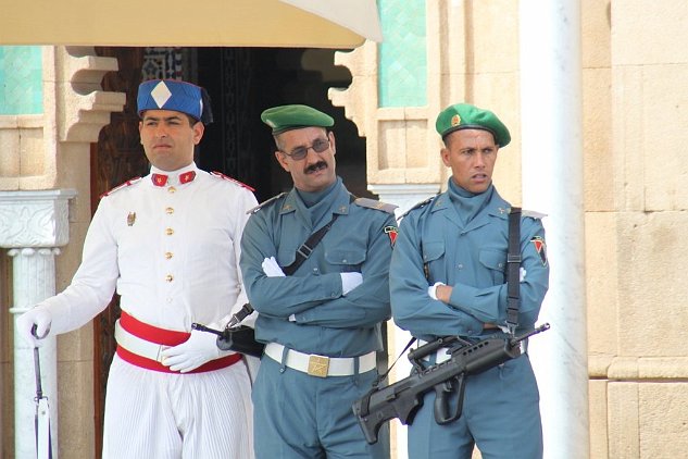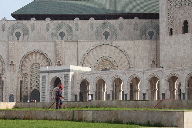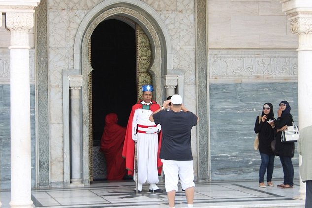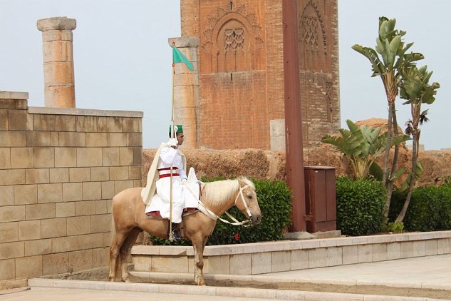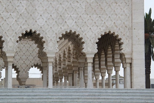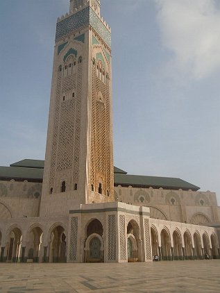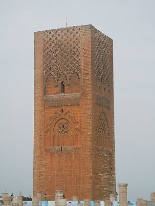 The minerets in Morocco are square, not round as in Turkey. This one is at the Mausoleum of Mohammed V complex.