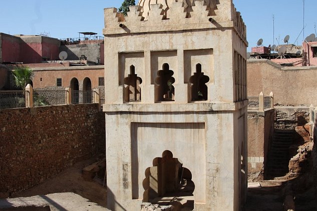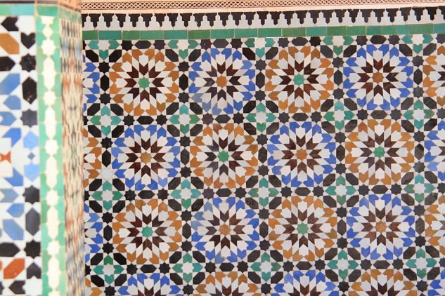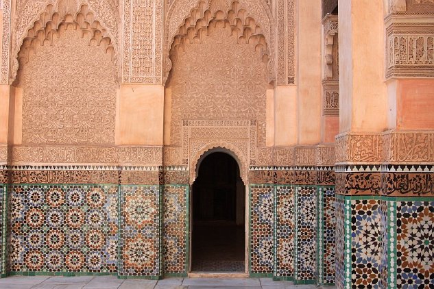 This looks like an outdoor couryard, but it is a single room at the Dar M’Nebhi (Musee Prive de Marrakesh)