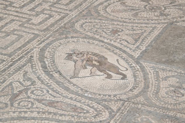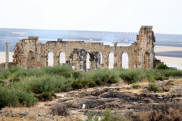 View of the large central building (called a basilica) in Volubilis. Volubilis is a UNESCO World Heritage site.
