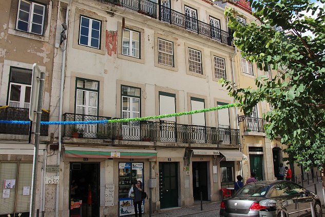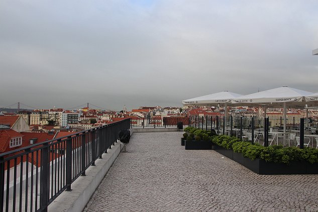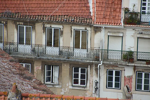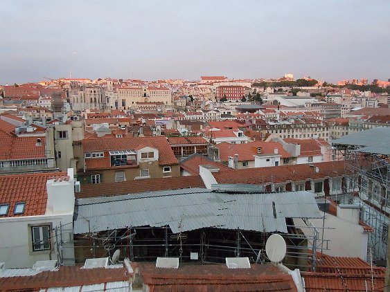 A view of the rooftops of buildings in central Lisbon. We are here because elevators located in this building will save us many a hike up the 153 (or so) stairs…