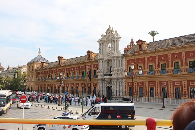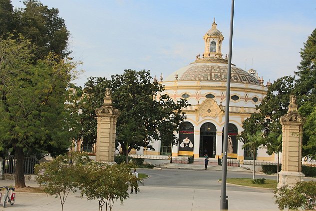 This is the ancient bull-fighting stadium. The Plaza de Toros de la Real Maestranza de Caballería de Sevilla was built in 1749.