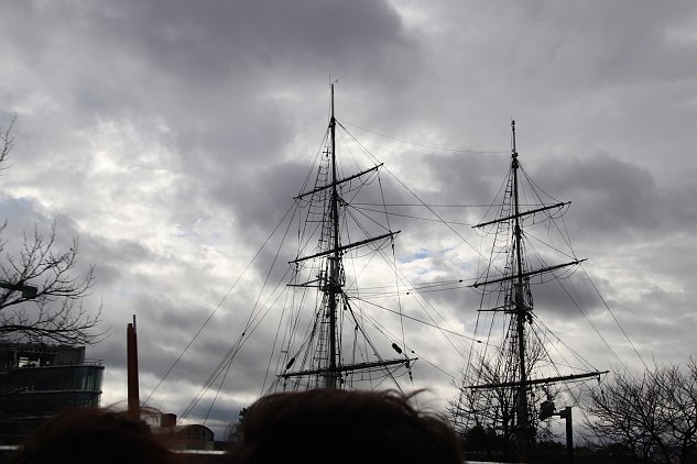 The reconstructed "faminine ship" Jeanie Johnston. It was built in Quebec and transported emigrants in the 1840s.