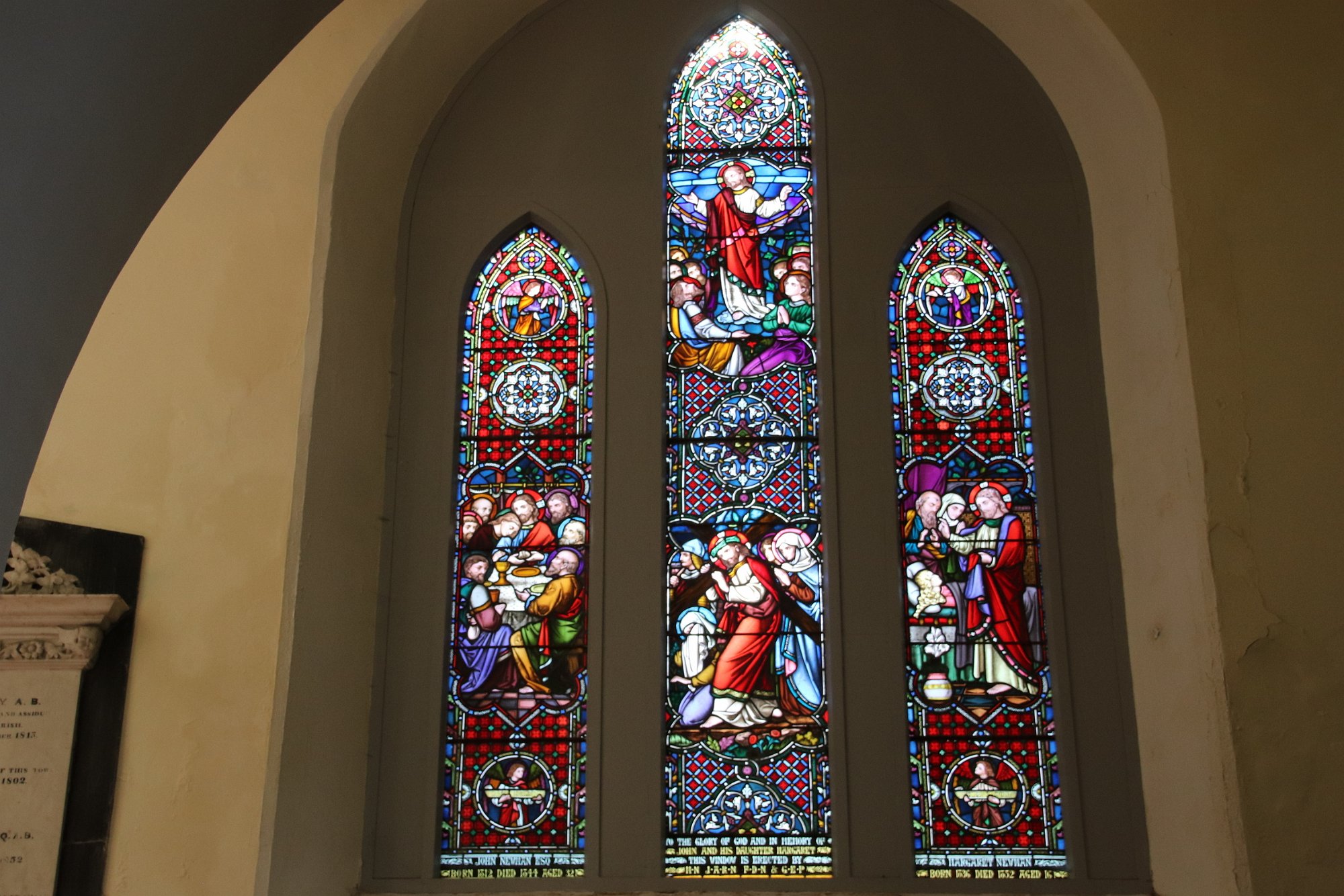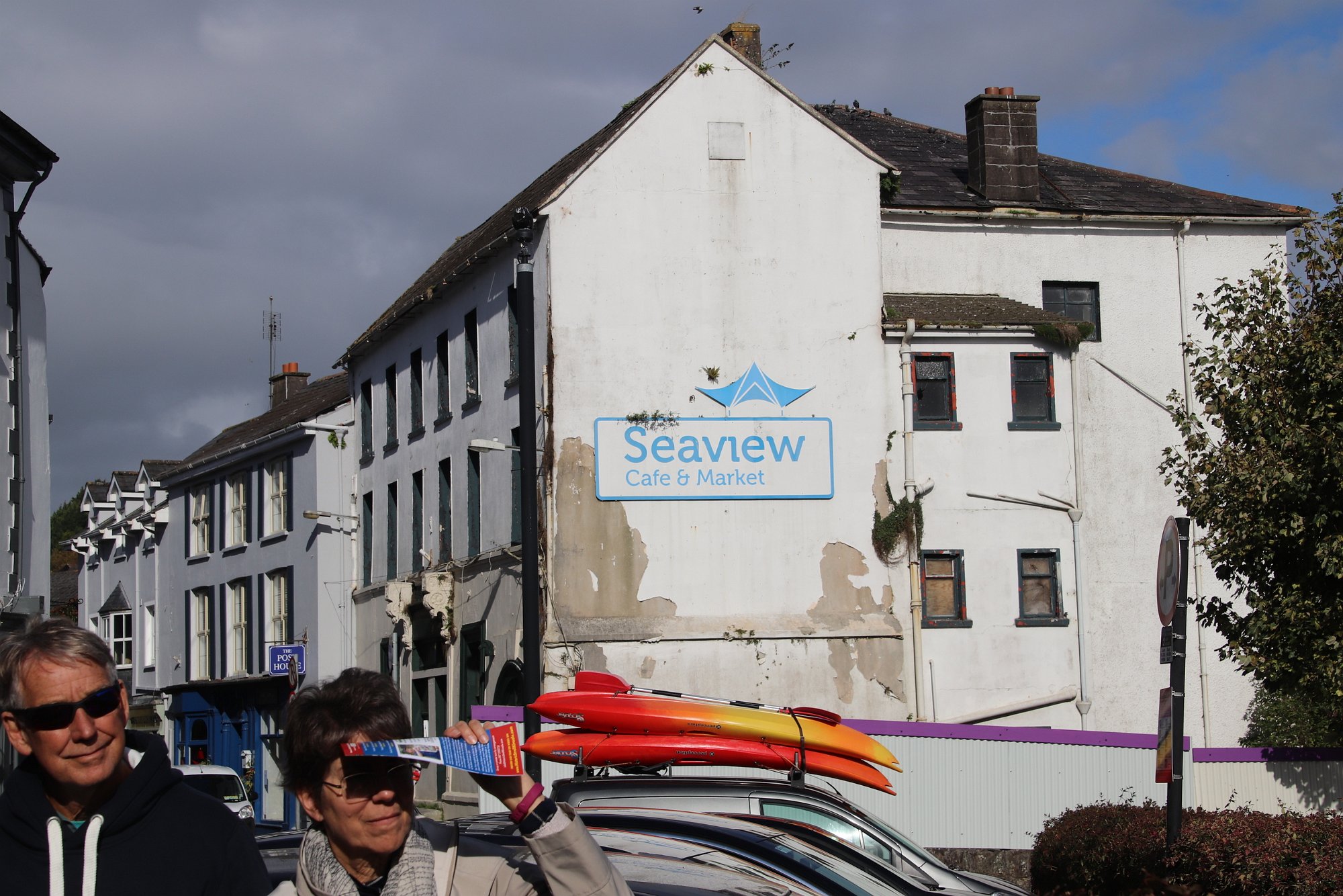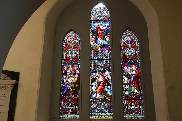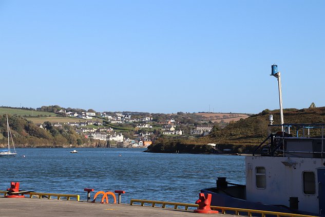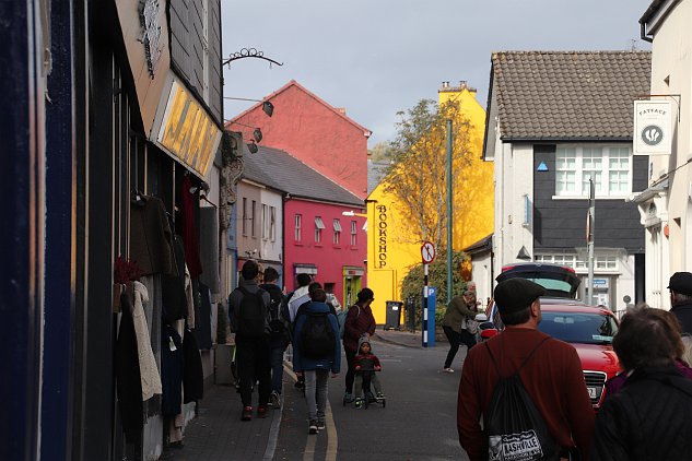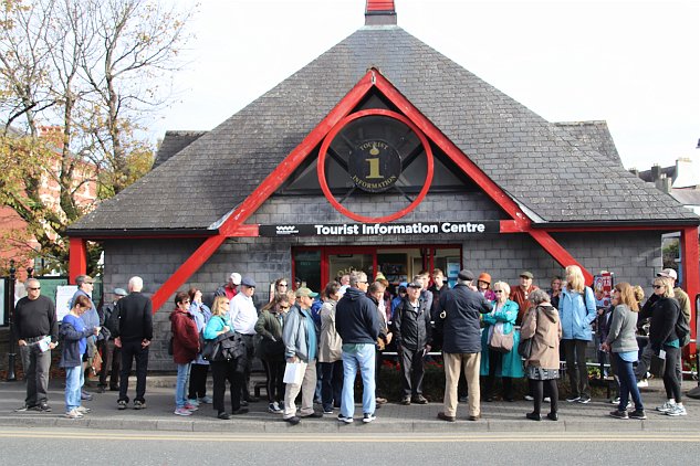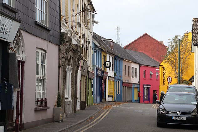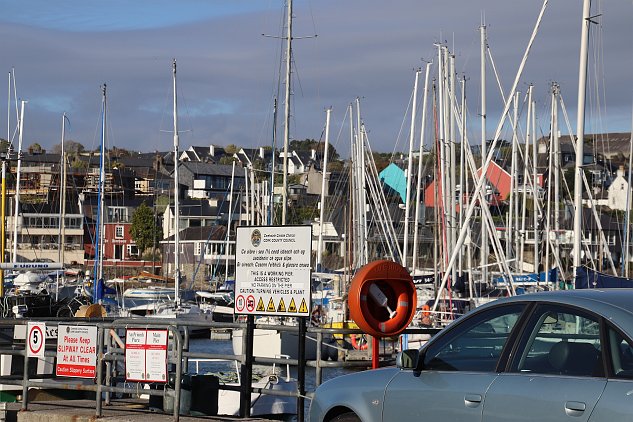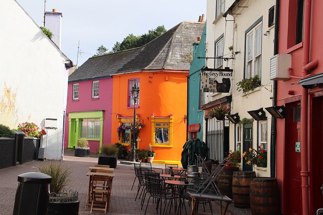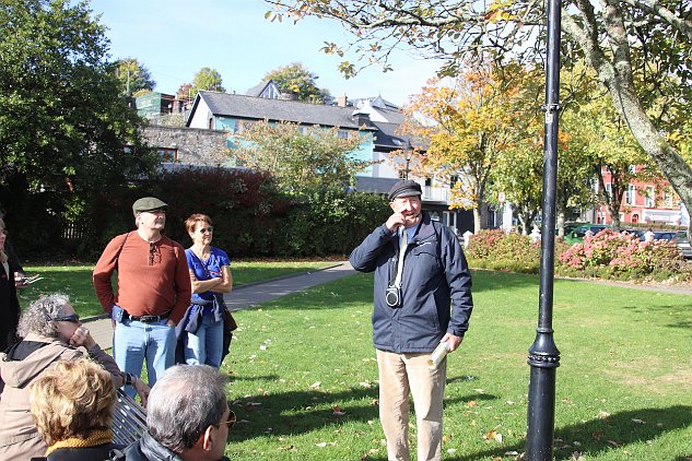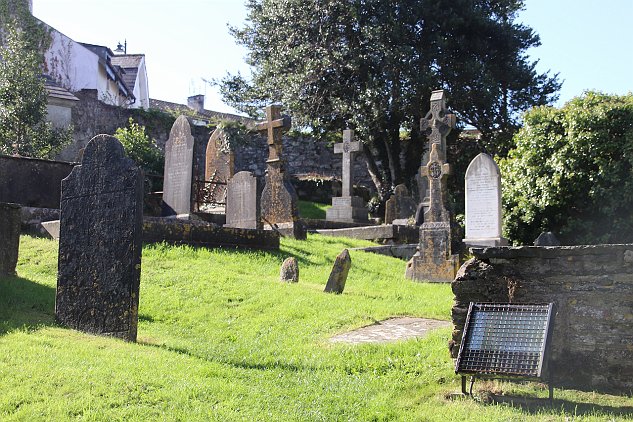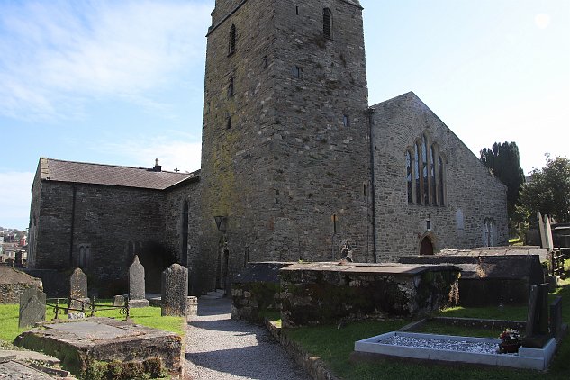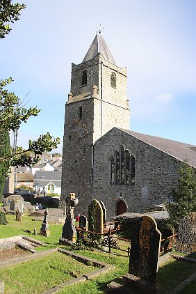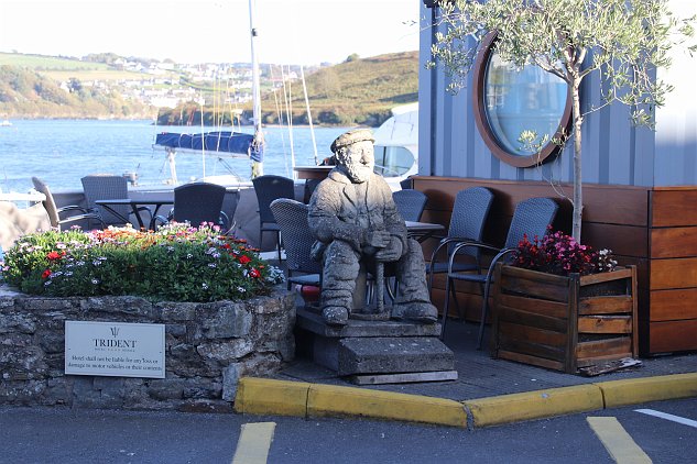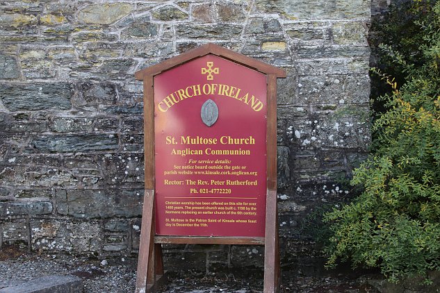 O'Connell St in Kinsale Tour group forming up Don Herlihy educating tourists Older buildings in Kinsale Colorful buildings near Market Square. Kinsale once won the "tidy Cities" competition. The old alleyway ws built to allow the biggest barrel of its day to be rolled through it. Just off Market Square St Multose The Norman tower was created in 1190 as part of the original construction. The graveyard of St Multose The interior of St Multose is very modern now Stained glass in St. Multose Bright, airy interior of St Multose The church itself is not all that large. The top part of the tower was added in 1750. There must have some large ships if they needed anchors this size. These are part of the Kinsale Museum exhibits. Market square. The city wall and the water, used to be just 50 feet to the right of where Patricia is standing. The double yellow "don't park here" lines also mark where the seaward city wall was. This old fellow keeps watch over the trident Hotel As you can see, the weather was-from time to time-bright and sunny in Kinsale on Tuesday. There were quite a few boats tied up. Rock of CashelDrombeg Stone Circle and a couple of other pictures from the drive and Sneem