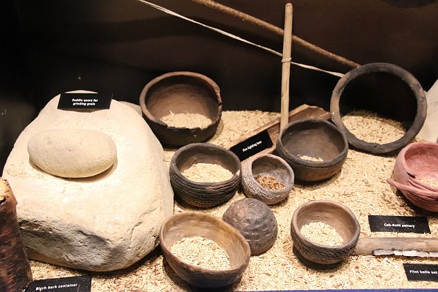 Ceramic bowls and grinding stones. Note the similarities to items found in other parts of the world.