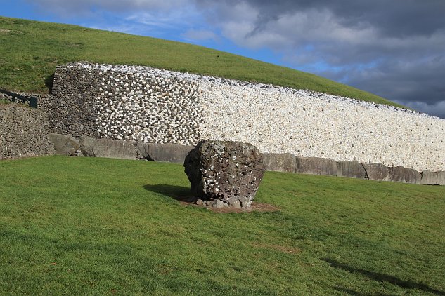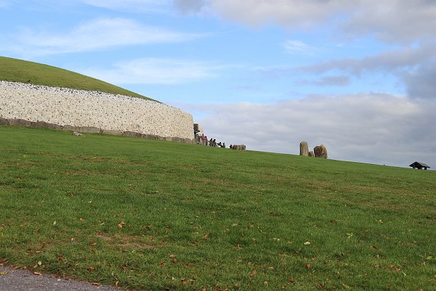 You can see people queued to go inside the Passage tomb. The front of the mound--the white quartz rocks--is a reconstruction made from the collapsed piles in…