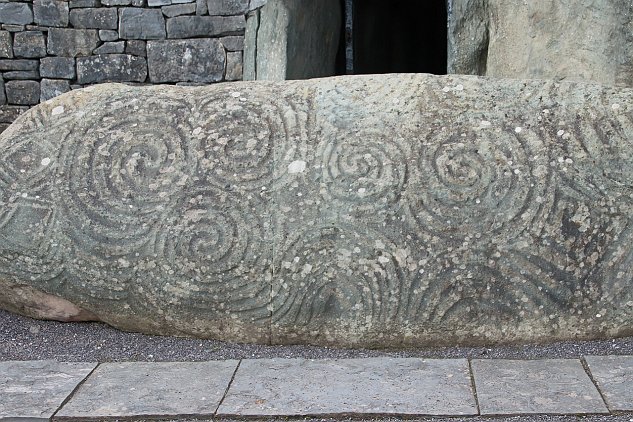 There is art on this kerbstone--look closely. There are 97 kerbstonds around the circumfrence of the mound. Not all of them are decorated.