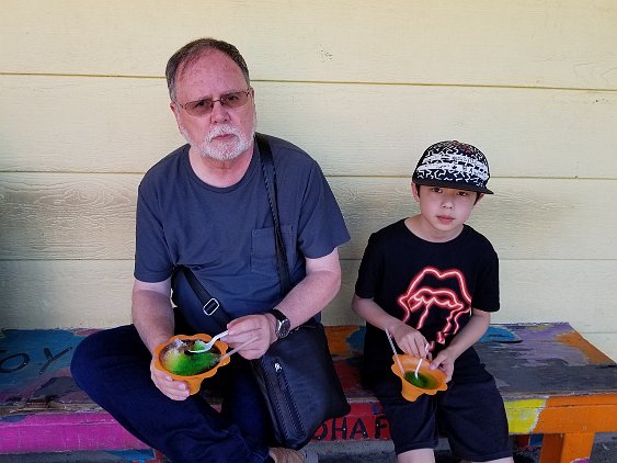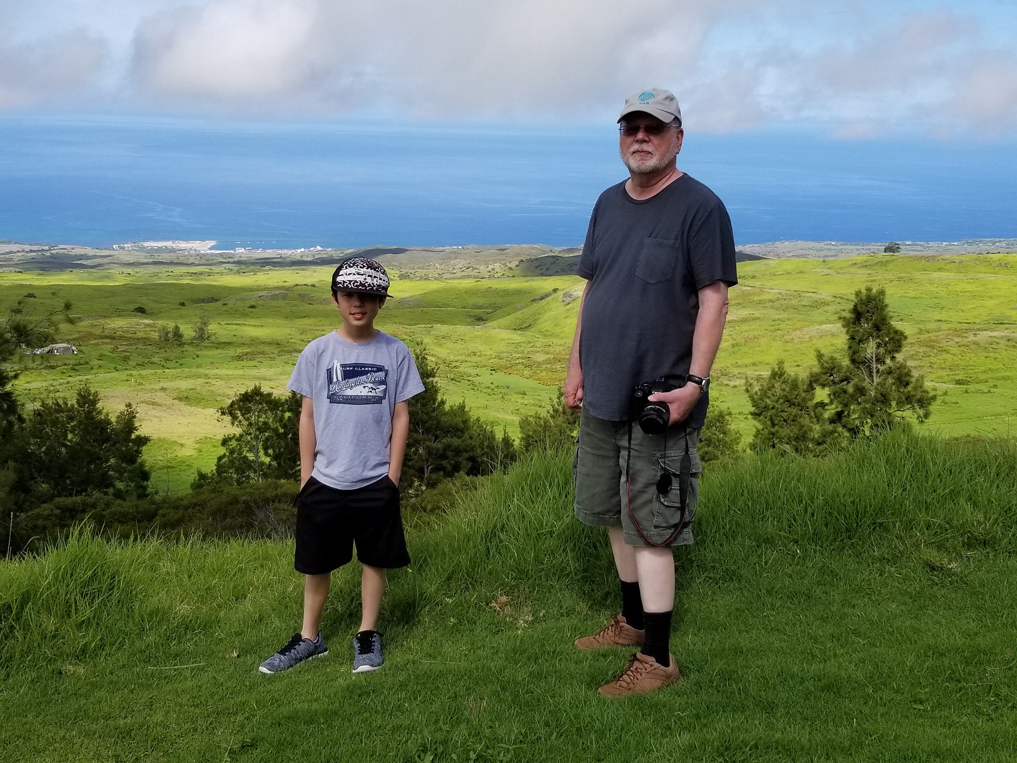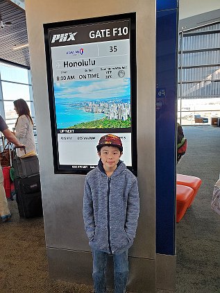 At the Phoenix airport, on our way to Hawaii. We left on May 25th. Noah took a picture of the Big Island as we came into the Kona airport. Durante tres días nos alojamos en un bonito hotel en la costa de Kohala. Hapuna Beach at twilight Noah took an early morning picture from our room at the Marriott. Puako Beach Puako Beach (Noah) Puako Beach Puako Beach (Noah) We had the best shave ice on the island. Anuenue Ice Cream and Shave Ice Noah helped me write some of the blog entries. One end of Hapuna Beach Driftwood on Hapuna Beach Patrica being artistic on Hapuna Beach Noah's pancakes at the "Hawaiian Style Cafe" near Waimea were nearly as large as his head. View from high up on Highway 250 looking down at the Kohala coast. I think the cluster of buildings is Kawaihae. Noah and Steven at the overlook on Highway 250 We visited Lapakahi State Park Lapakahi State Park; reconstructed building Noah near the fishing village at Lapakahi State Park Kauai