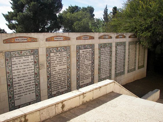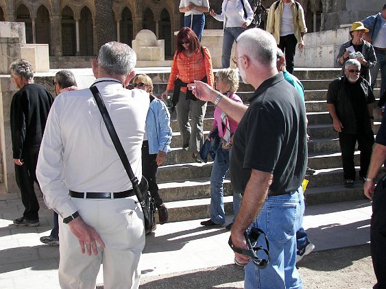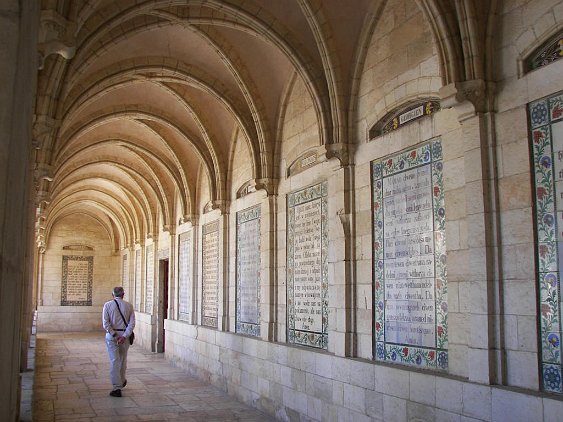 Mount of Olives: Church of the Pater Noster (Our Father prayer) with Gary (HP person I was working with) on the right and Daniel, our guide, on the left