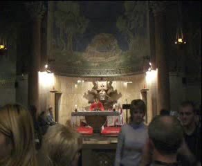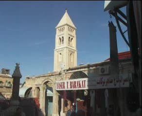 Just the shoreline of the Mediterranean sea looking towards Jaffa. Listen to the waves An archeological site in Jaffa that shows walls from multiple periods. An archeological site in Jaffa that shows a recreation of an Egyptian portal and multiple layers of walls The souk in Jaffa. Lots of old stuff; not as much tourist stuff as I expected. Noisy! Overview of the old city from the Mount of Olives. You can hear Daniel, our guide, speaking. Overview of the old city from the Mount of Olives. You can hear Daniel, our guide, speaking. Bells in the old city of Jerusalem. Lots of tourist shops, too. A Mass inside the "church of all nations" next to the Garden of Gethesemene Jerusalem