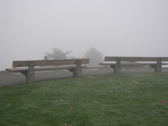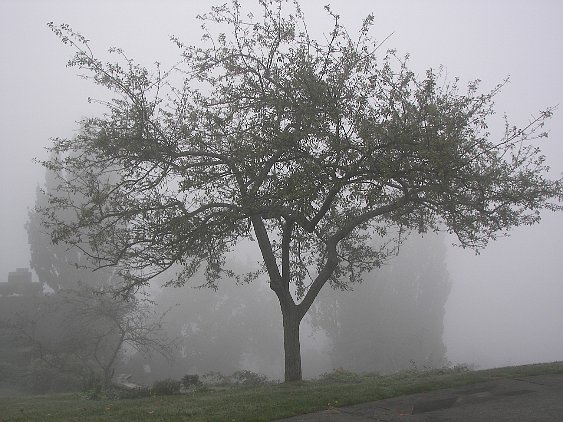 In mid-October we took pictures on a foggy day. This one is in the garden at the 614 Prospect house.